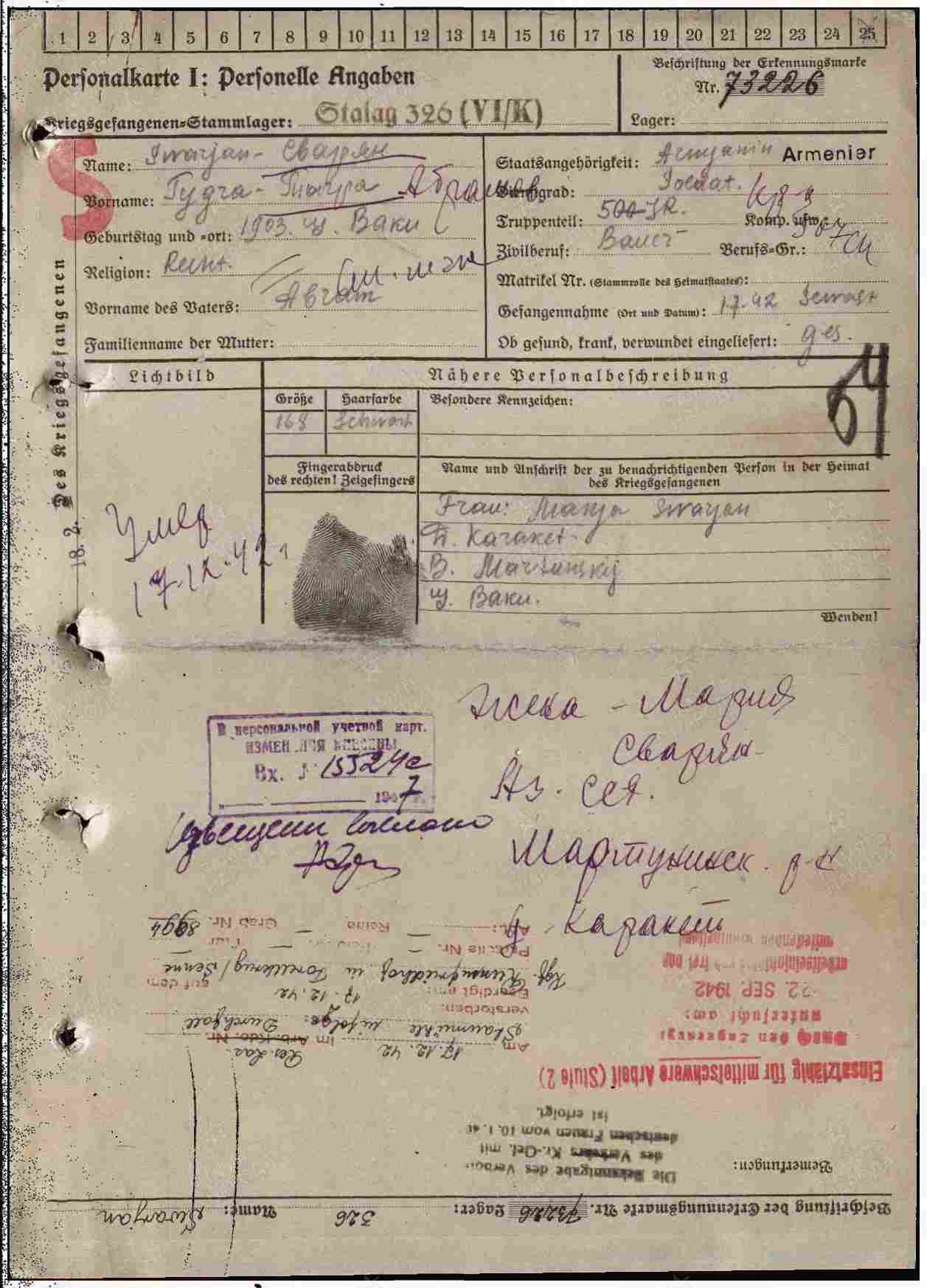 Ф.И.О.: Сварян (Еварян) Тигран (Тыгра) Абрамович (Акимович)