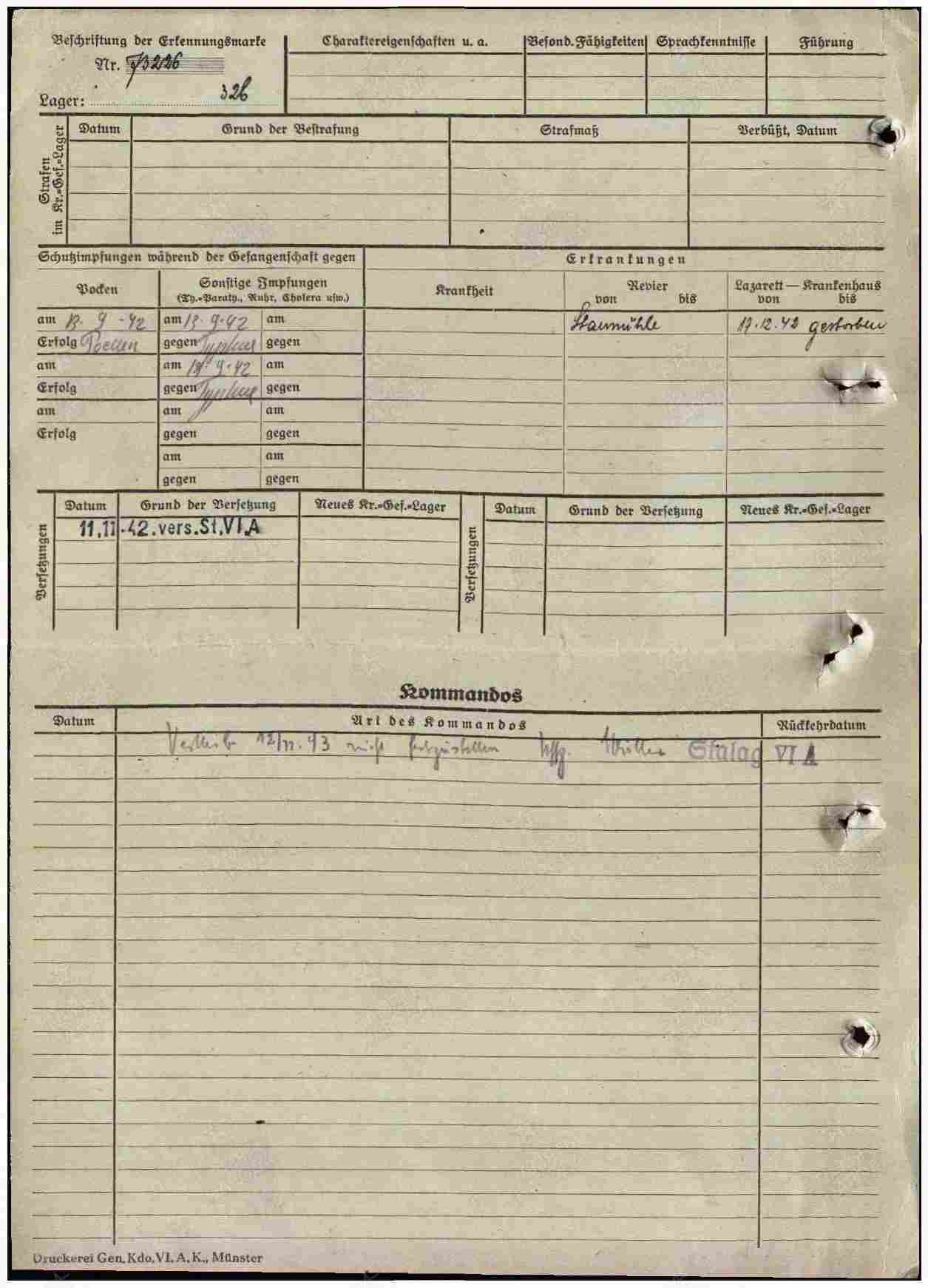 Страна захоронения ФРГ. Регион захоронения Земля Северный Рейн-Вестфалия. Место захоронения административный округ Гютерсло, г. Шлосс Хольте-Штукенброк, 33758, ул. Зеннер Штрассе