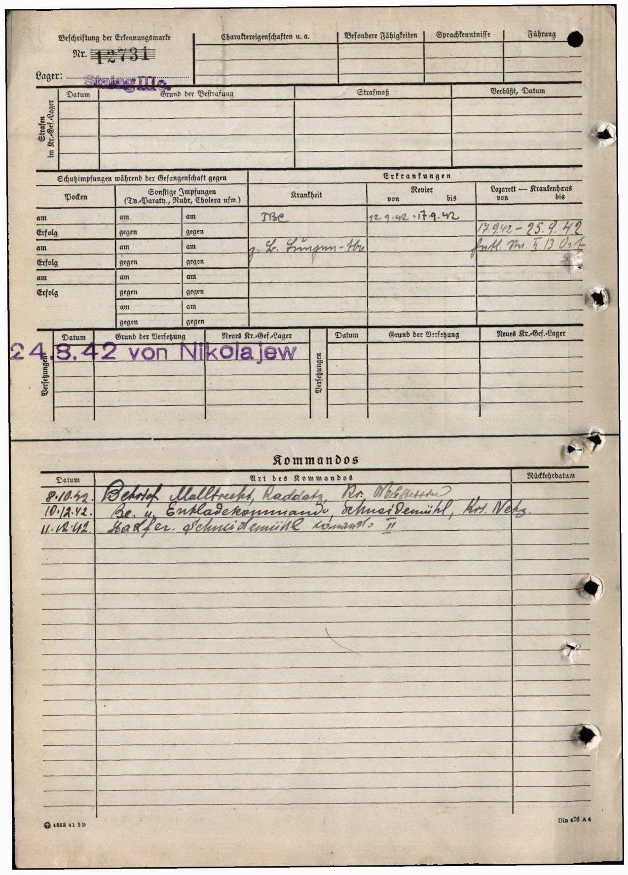 Дата призыва: 1941 Место призыва: Червоный РВК, Украинская ССР, Сумская обл., Червоный р-н. 602 СП 109 СД переформирован 29.01.1942 из 383 СП 2 СД