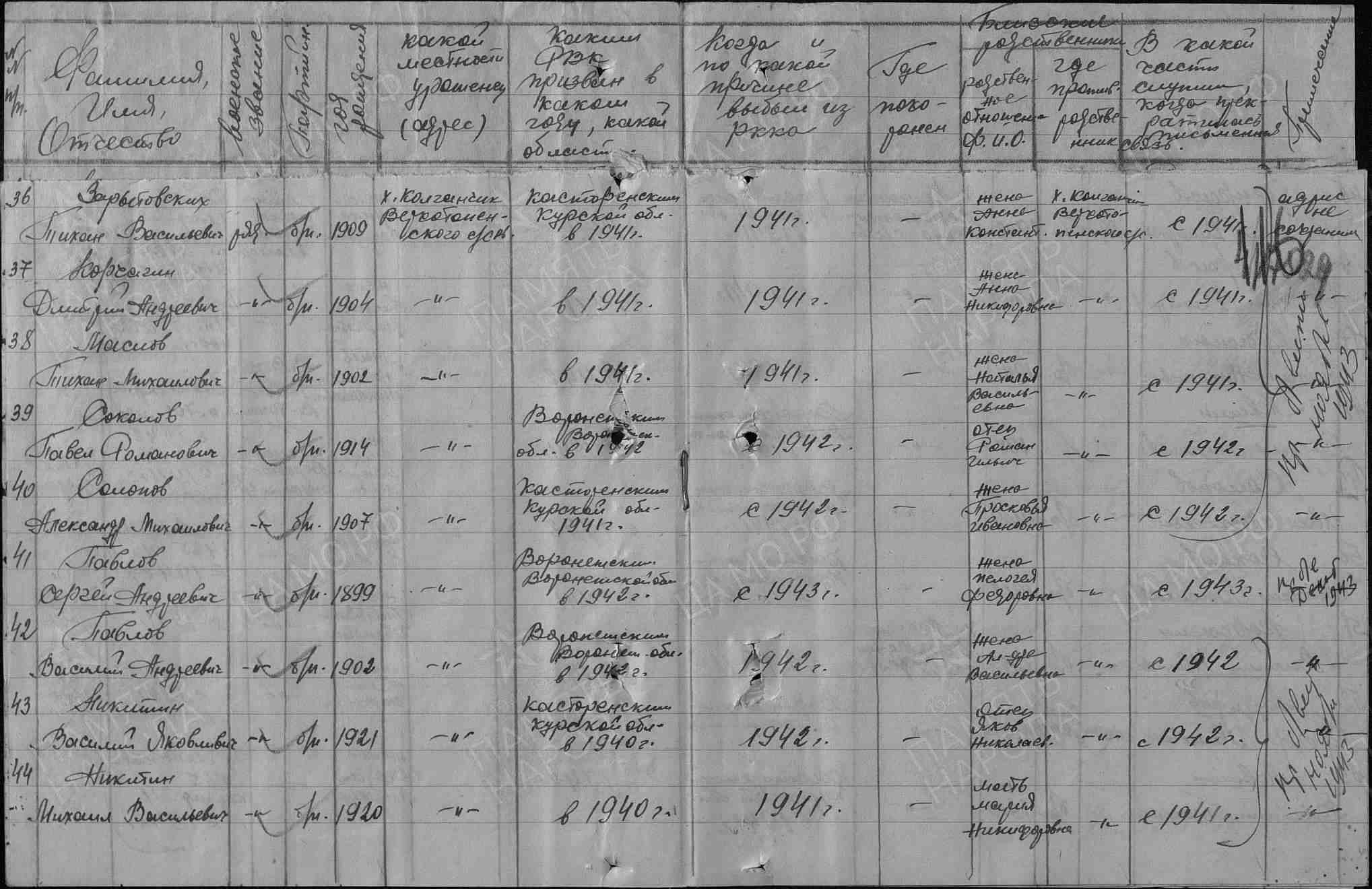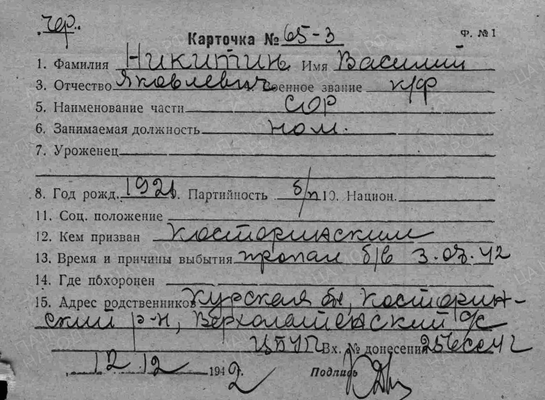 ЦВМА Картотека безвозвратных потерь; ЦВМА документы; ЦАМО ф.58,о.18004,д.637; ЦАМО ф.58,о.977520,д.2323