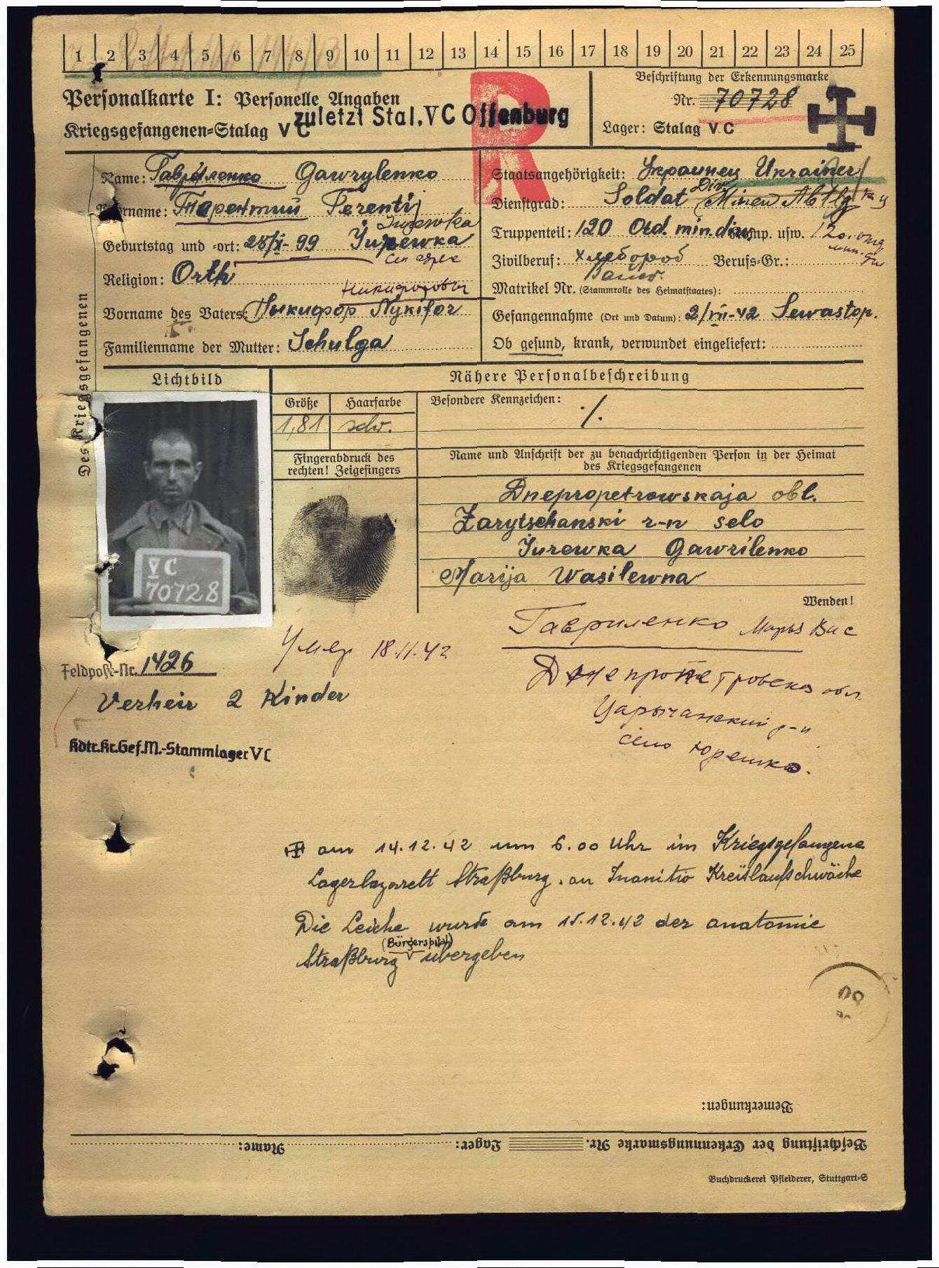 Дата призыва: 23.06.1941 Место призыва: Царичанский РВК, Украинская ССР, Днепропетровская обл., Царичанский р-н