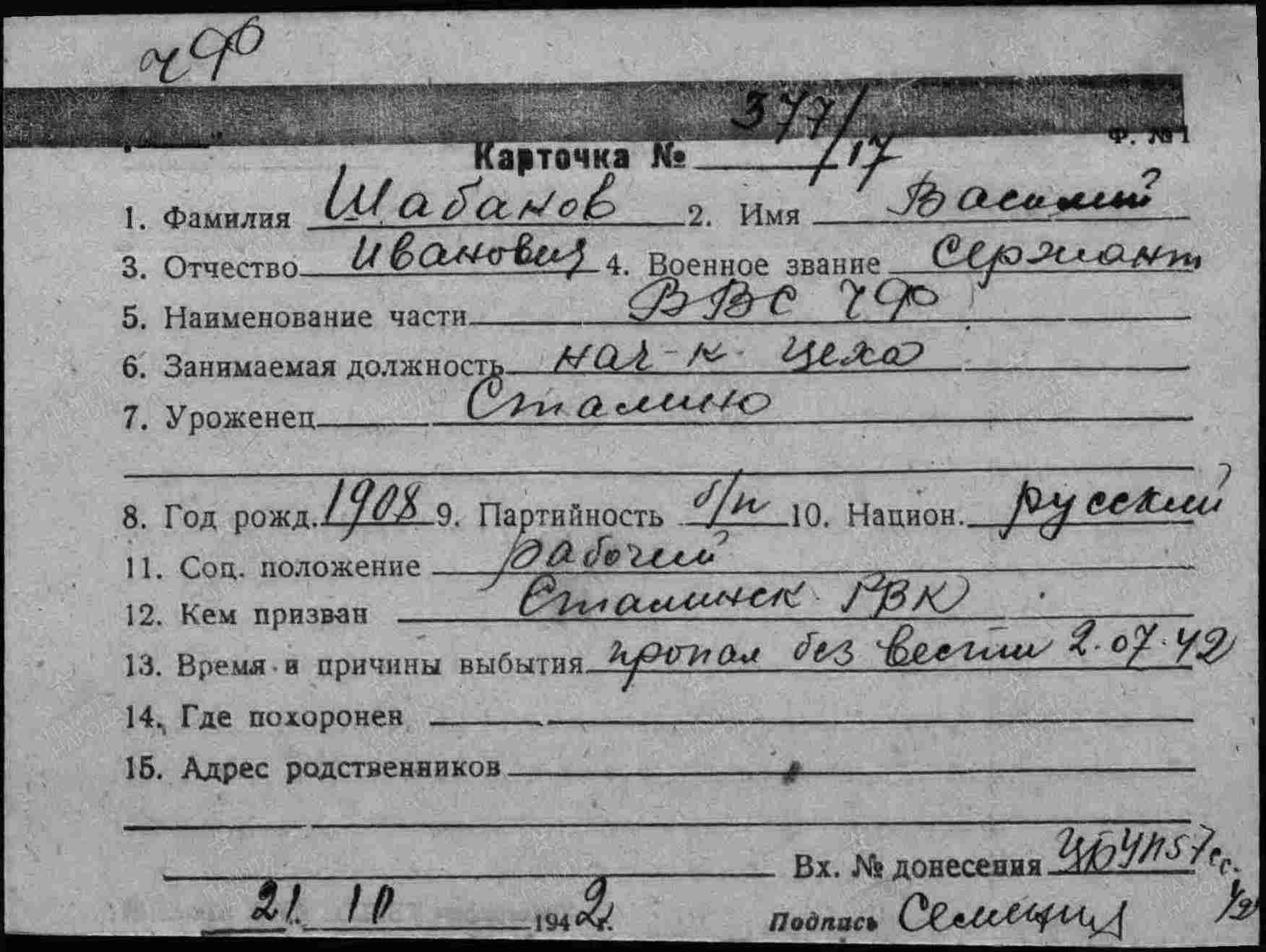 Ф.И.О.: Шабанов (Шабашов, Шабашев) Василий Иванович (Шабашович)