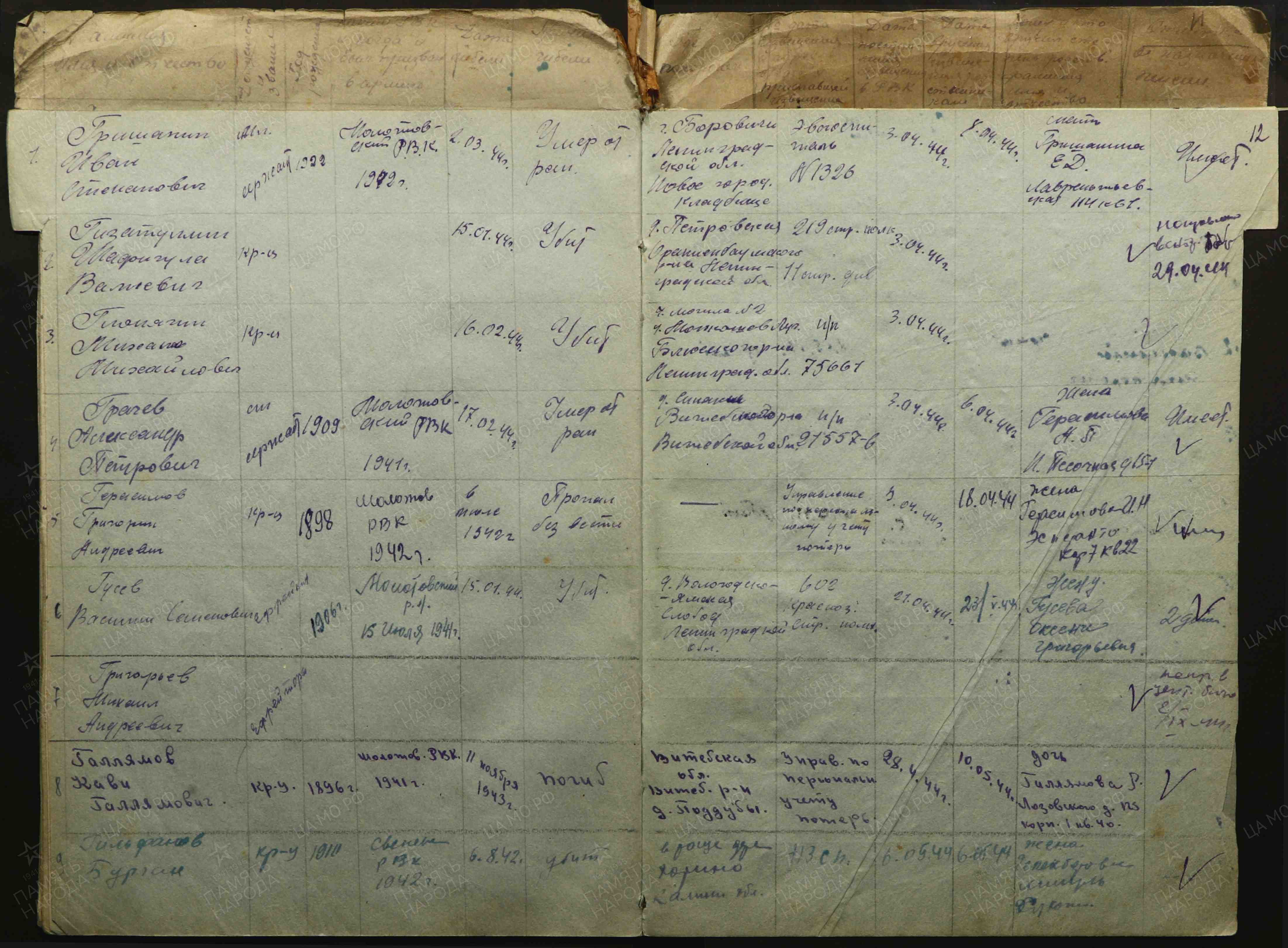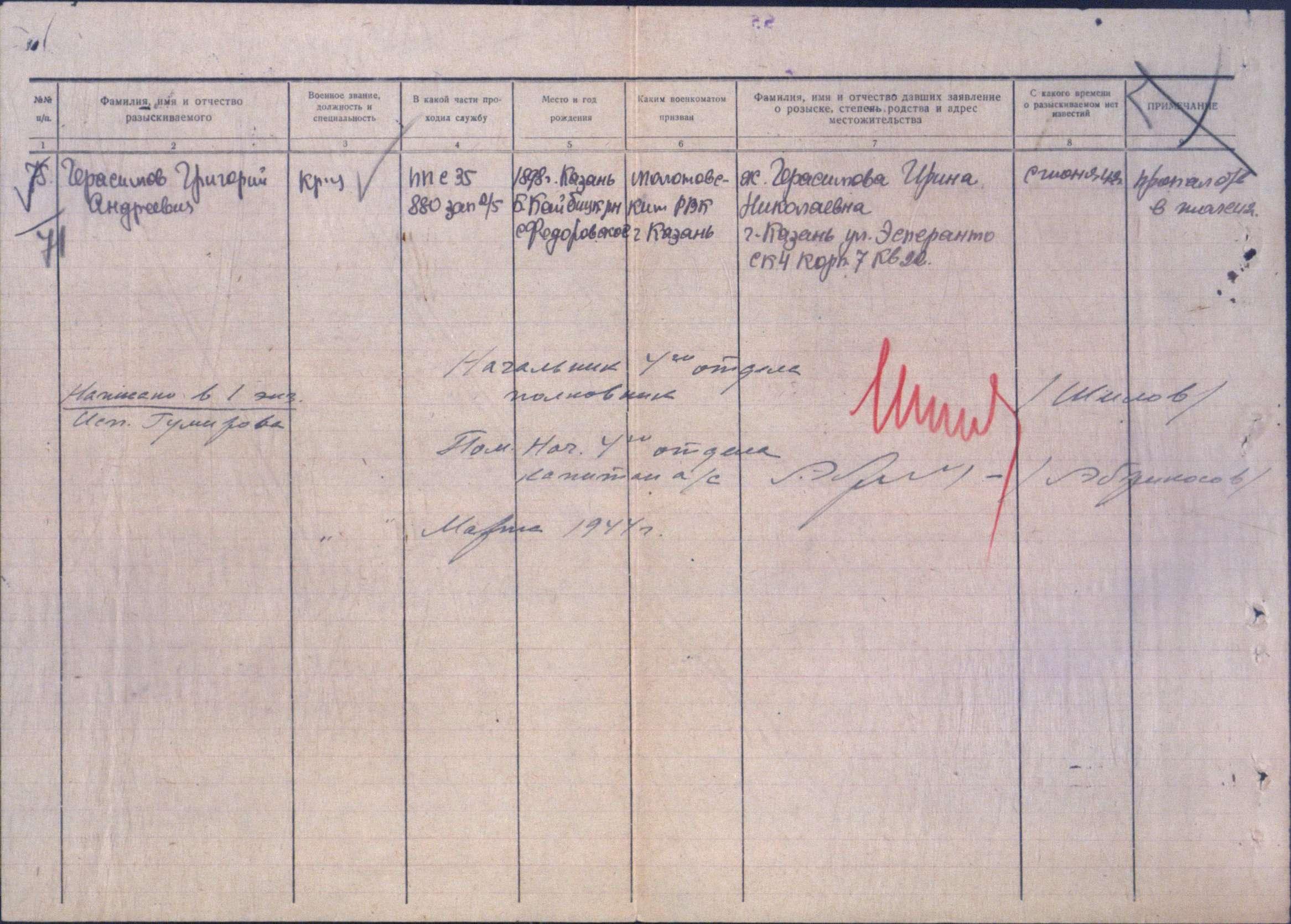 Дополнительно: Место призыва: Молотовский РВК, Татарская АССР, г. Казань, Молотовский р-н