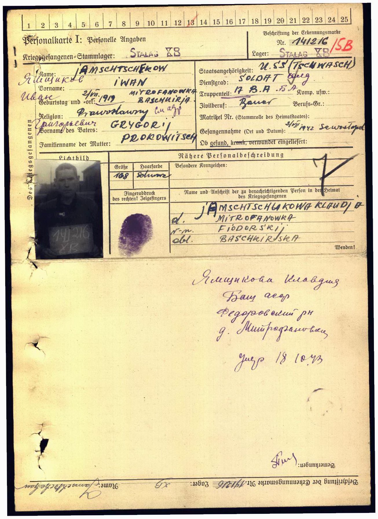 Дата и место пленения: 02.07.1942 Севастополь
