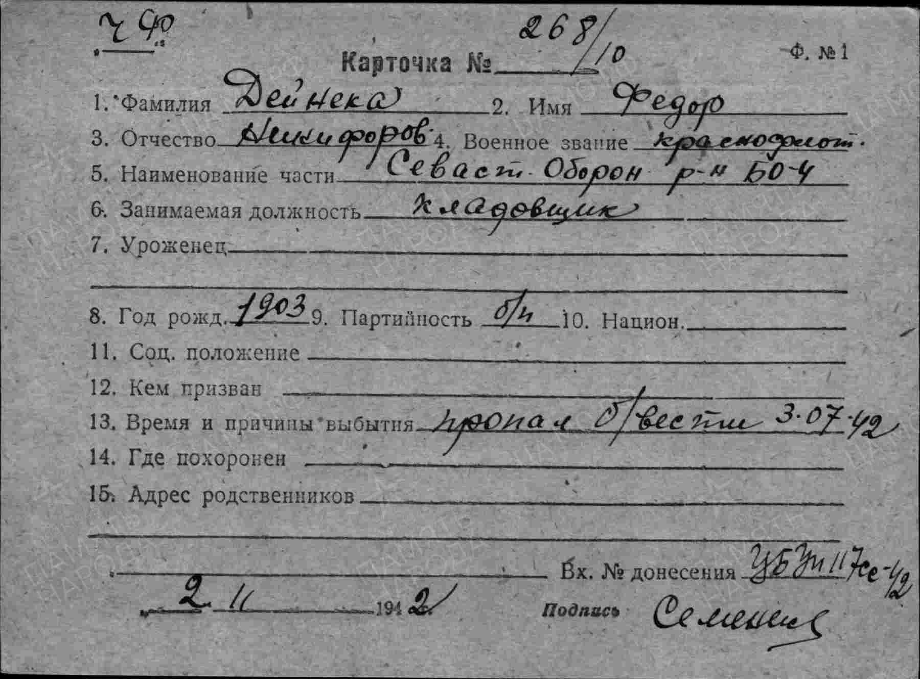 ЦВМА Картотека безвозвратных потерь; ЦВМА документы; ЦАМО ф.58,о.977521,д.1031