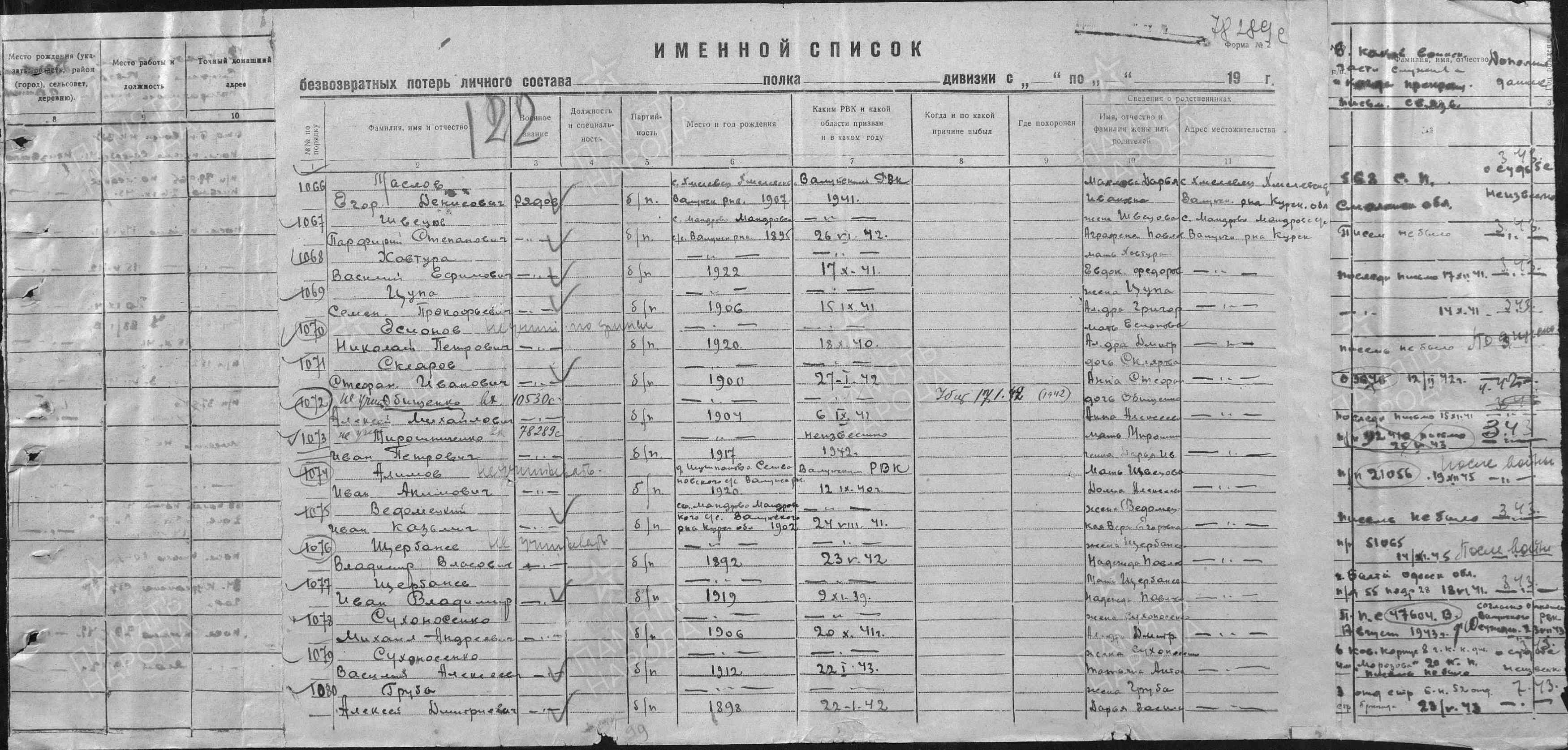Дата призыва: 17.10.1941 Место призыва: Валуйский РВК, Курская обл., Валуйский р-н