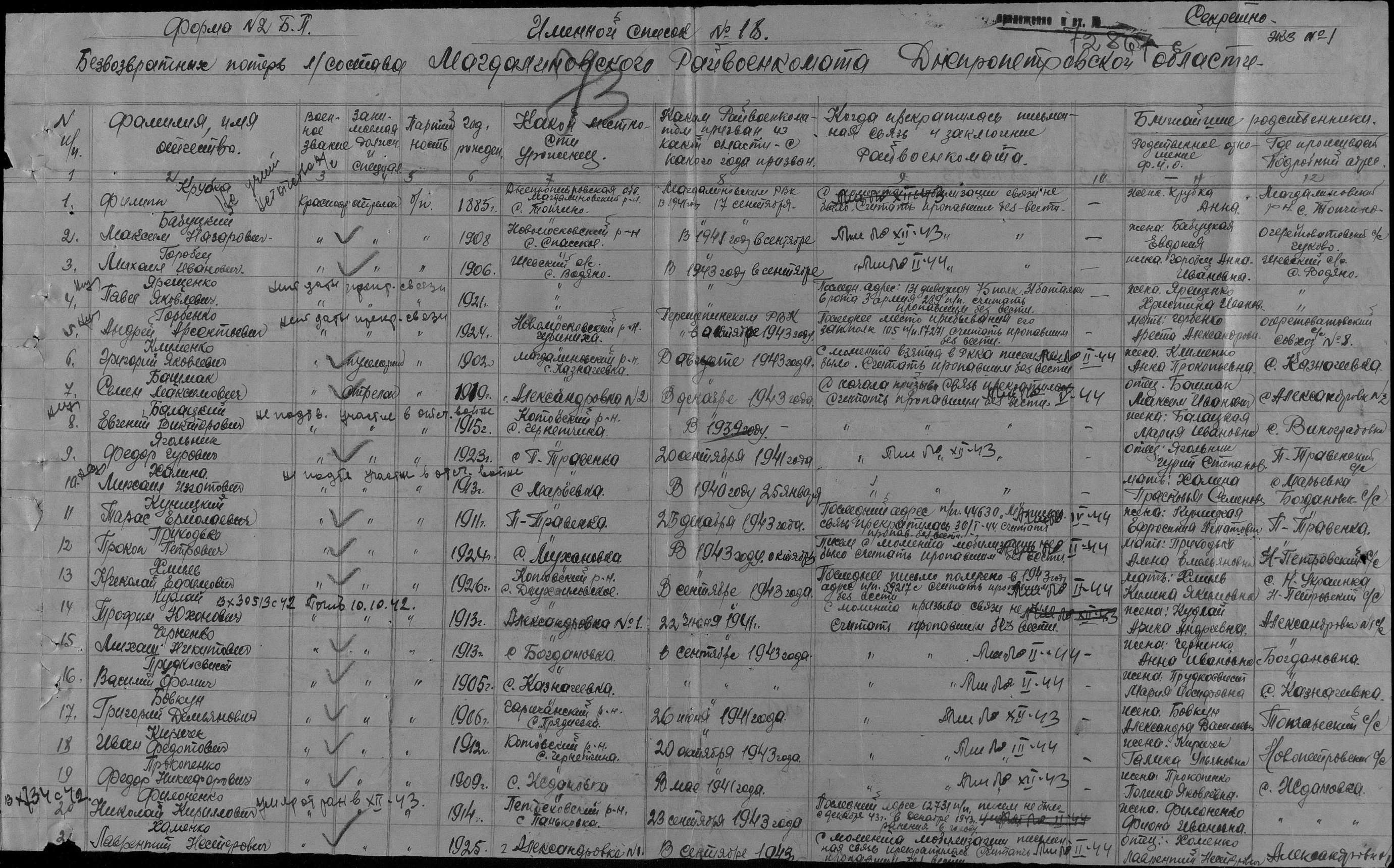 Дополнительно: Дата призыв: 20.09.1941 Место призыва: Магдалиновский РВК, Украинская ССР, Днепропетровская обл., Магдалиновский р-н