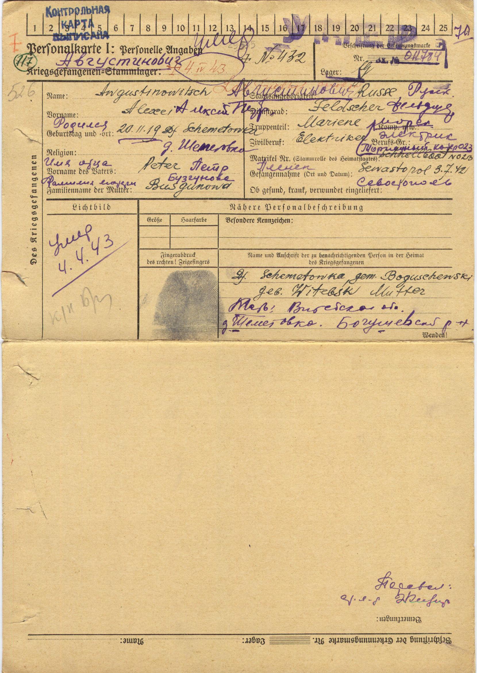 ЦВМА Картотека безвозвратных потерь; ЦАМО Картотека военнопленных офицеров;