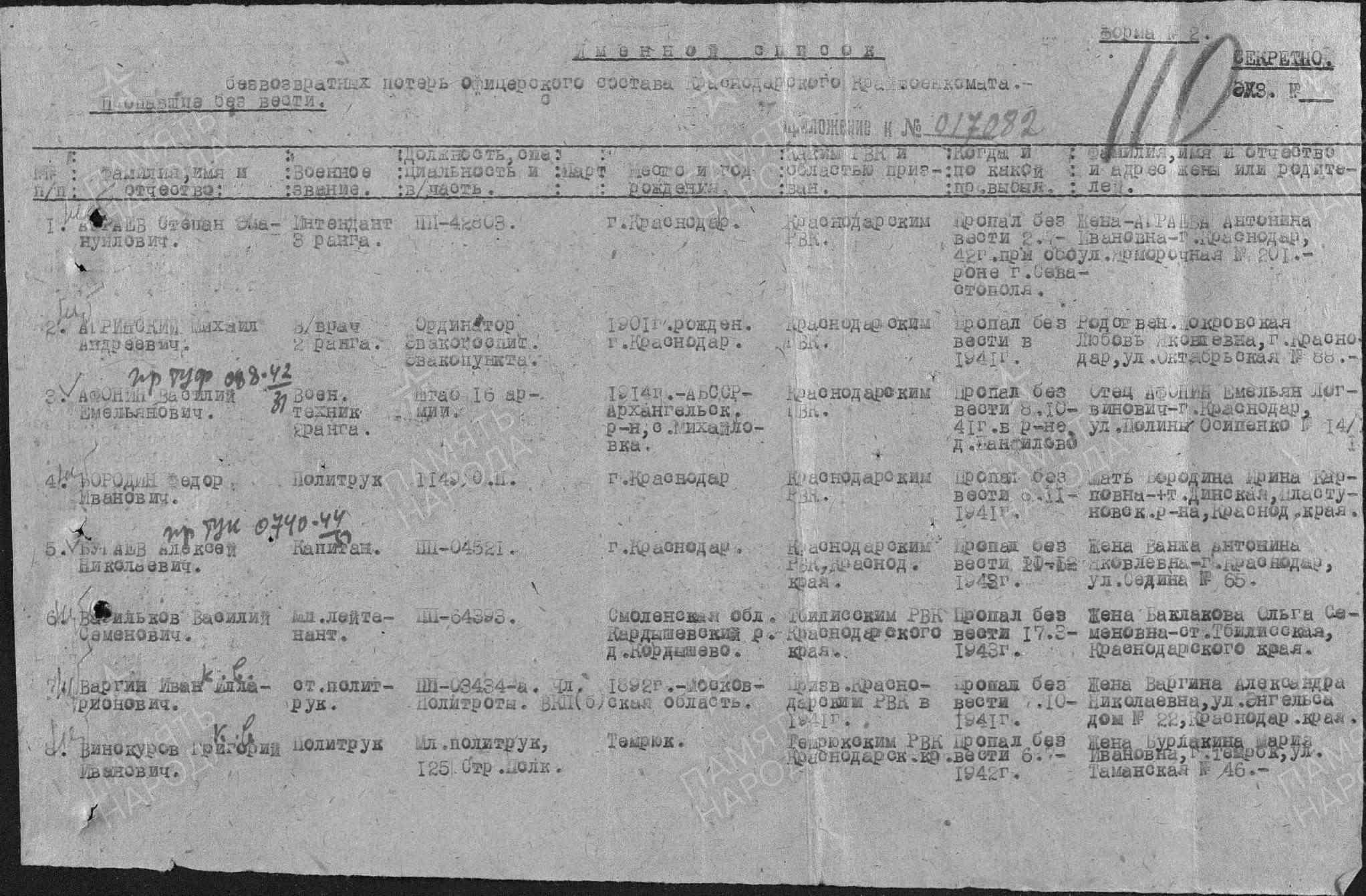 ЦВМА Картотека безвозвратных потерь; ЦВМА документы; ЦАМО ф.33,о.11458,д.547; ЦАМО Картотека военнопленных офицеров
