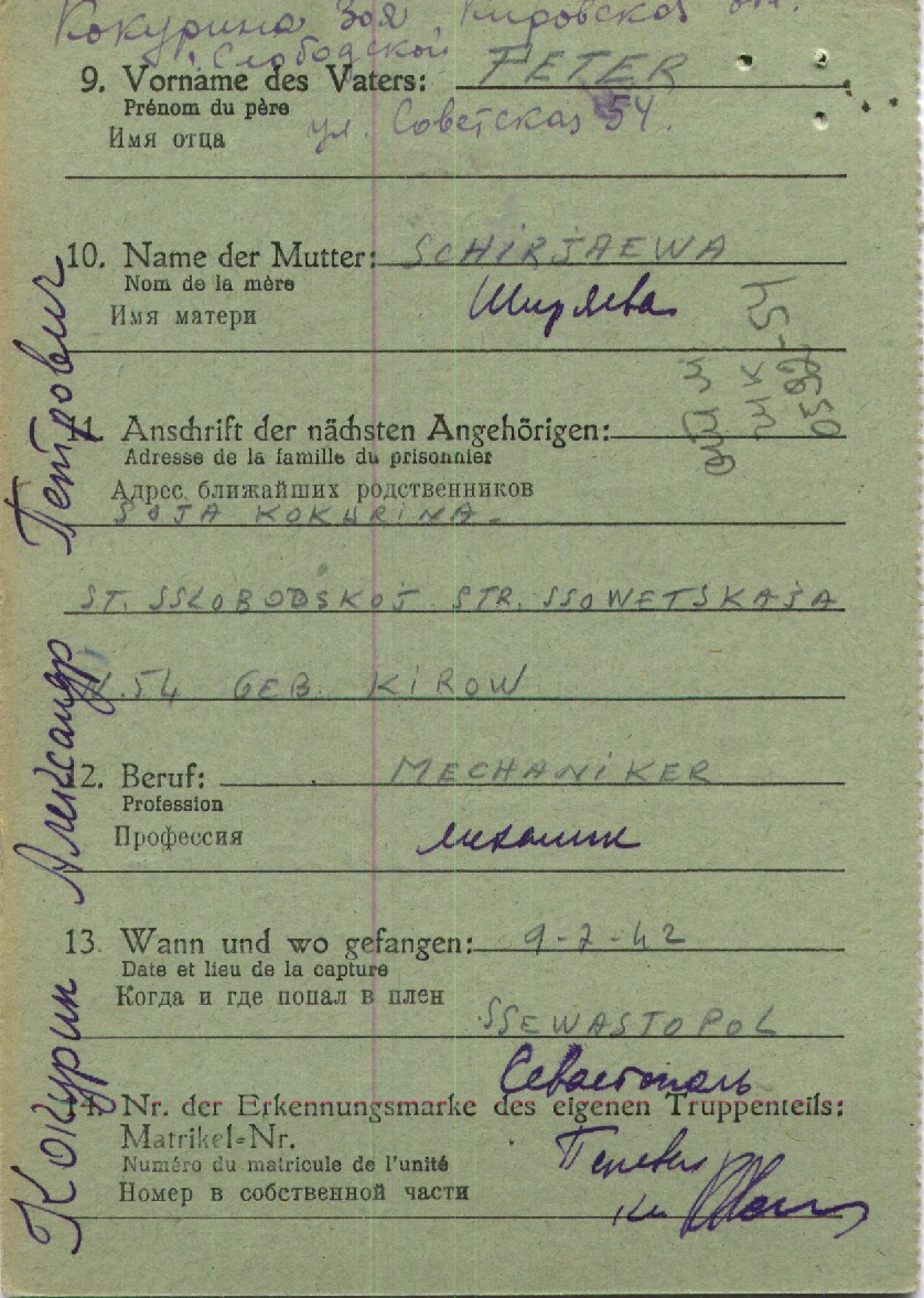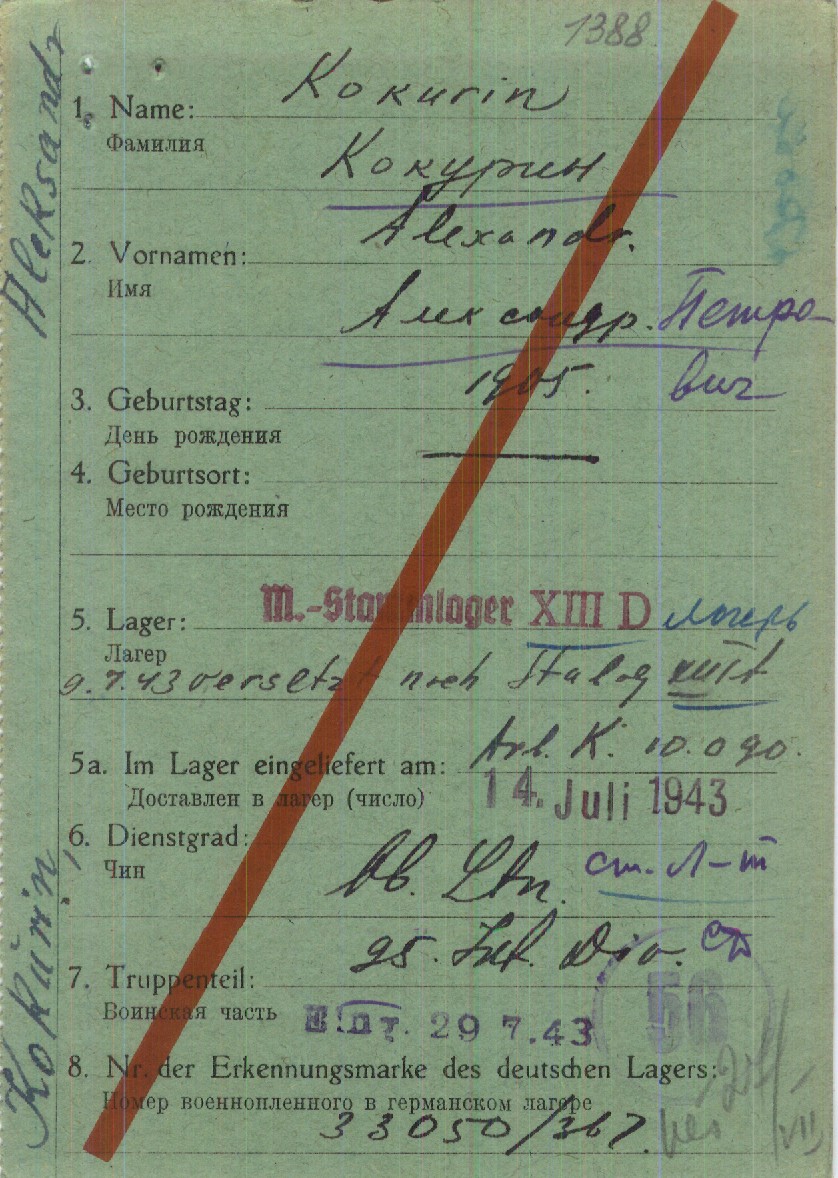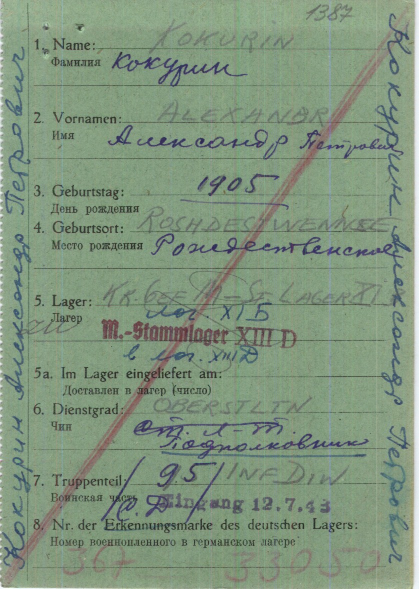 ЦАМО ф.33,о.11458,д.641; ЦАМО Картотека военнопленных офицеров; ЦАМО Картотека ФЗСП и АЗСП; фонды НМГОиОС