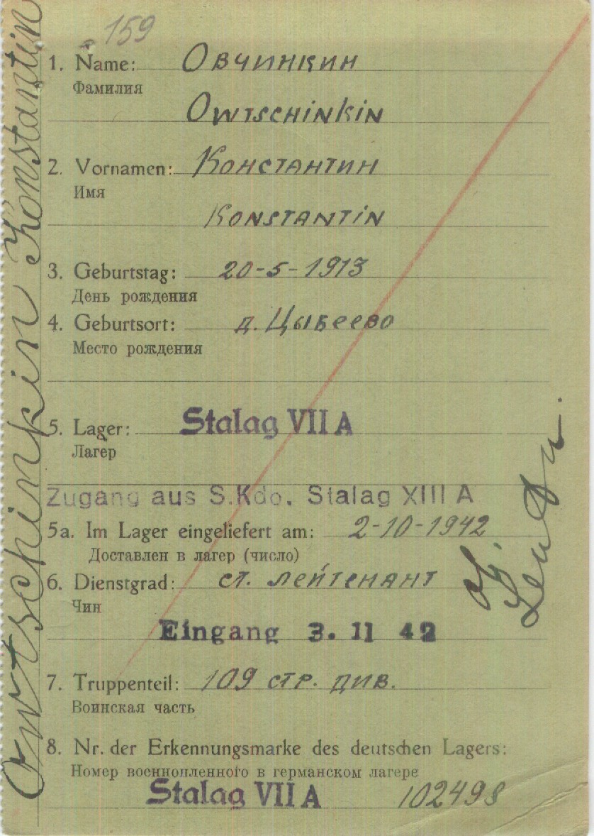 Место заключения: шталаг VII A