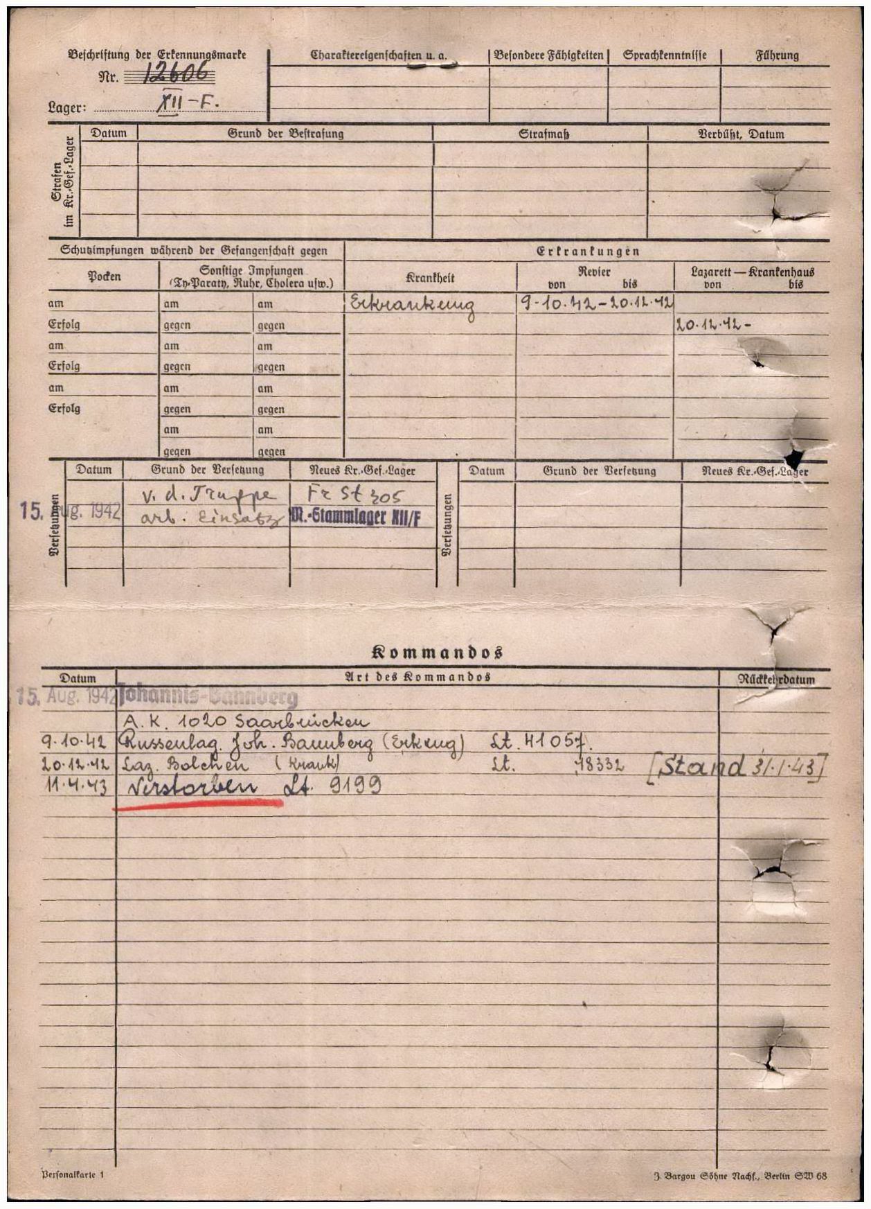 Место заключения: шталаг XII F