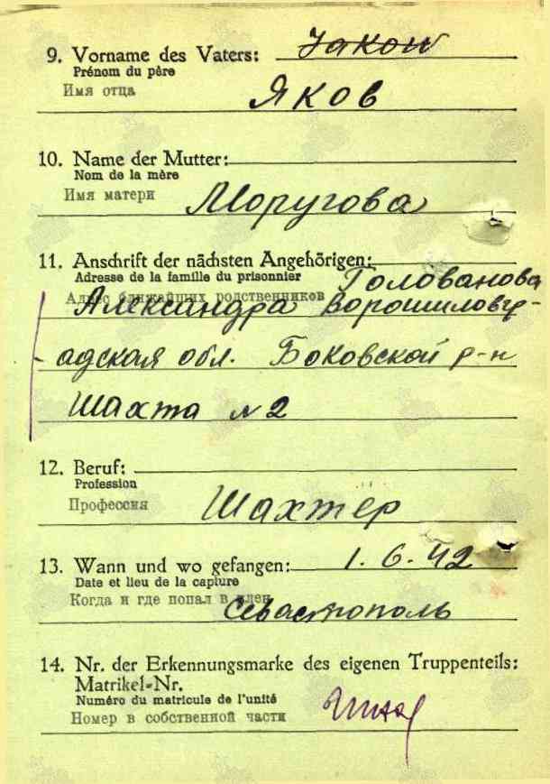 Дополнительно: Дата призыва: 08.1941 Место призыва: Боково-Антрацитовский РВК, Украинская ССР, Ворошиловградская обл., Боково-Антрацитовский р-н