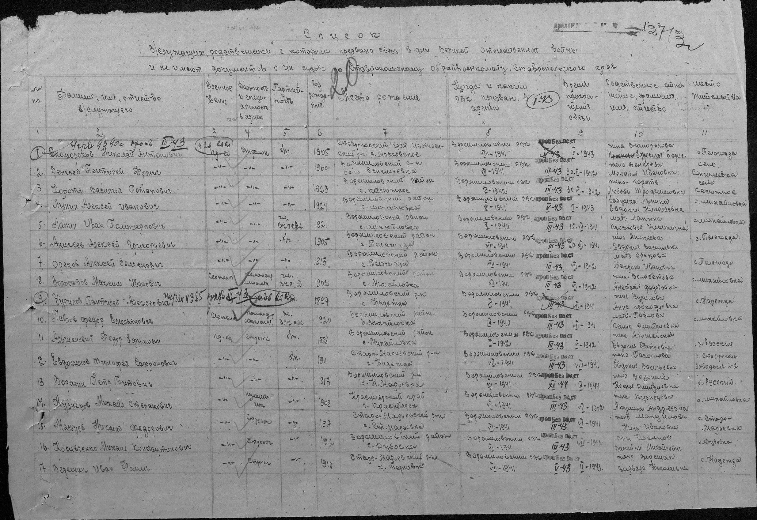 Дата призыва:01.1942. Место призыва: Ворошиловский РВК, Ставропольский край, Ворошиловский р-н.