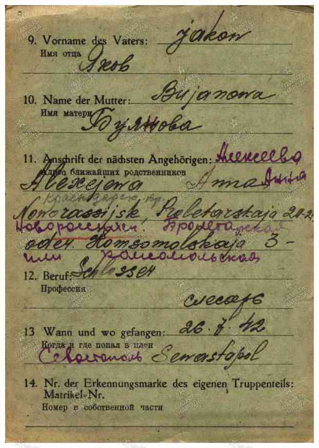 Дополнительно:Дата призыва: 06.10.1941 Место призыва: Новороссийский ГВК, Краснодарский край, г. Новороссийск.