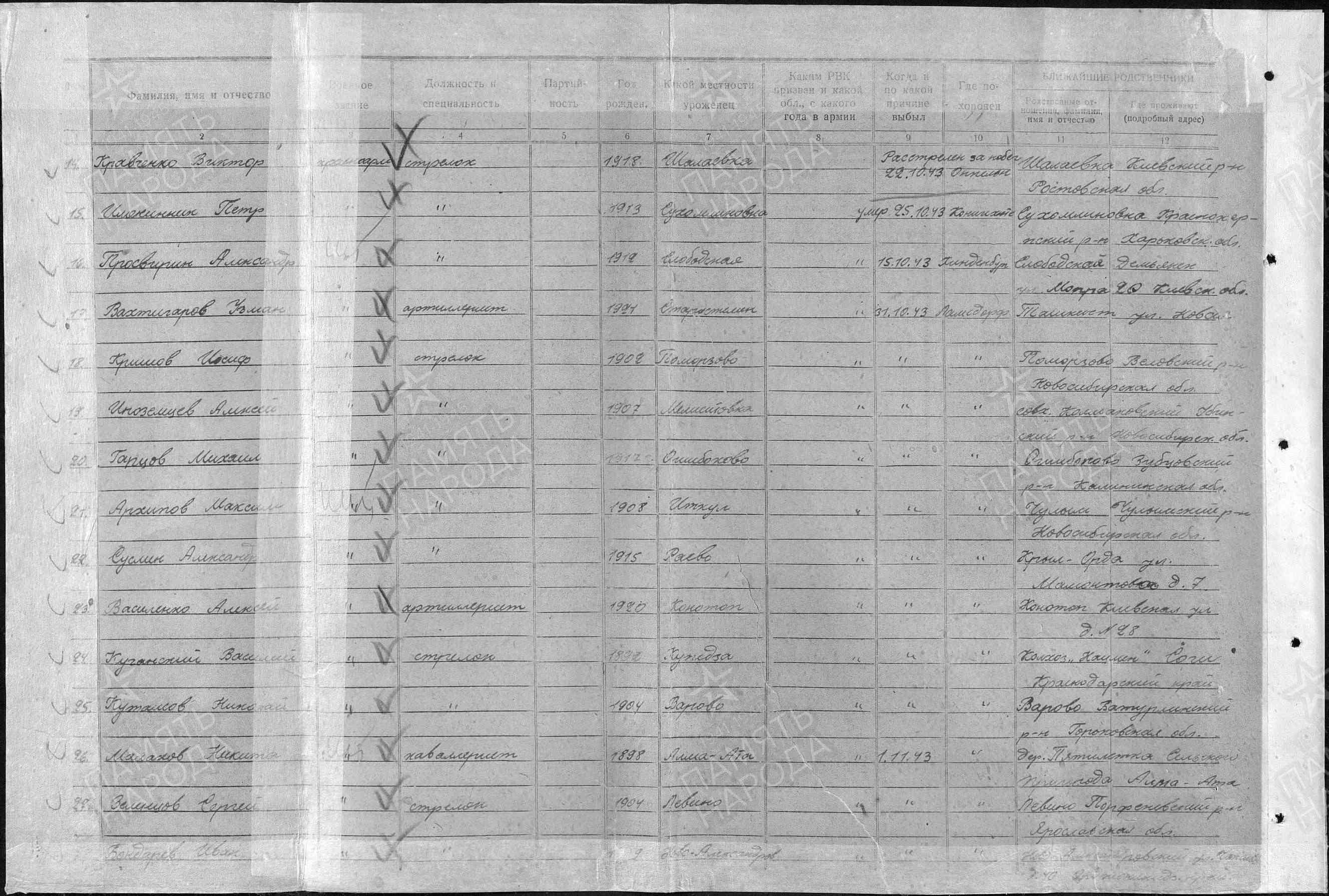 Информация: ЦАМО ф.8646,о.129228с,д.57; ЦАМО ф.58,о.977520,д.155; ЦАМО ф.58,о.18004,д.261; ЦАМО ф.58,о.977521,д.1632; ЦАМО ф.58,о.18004,д.25