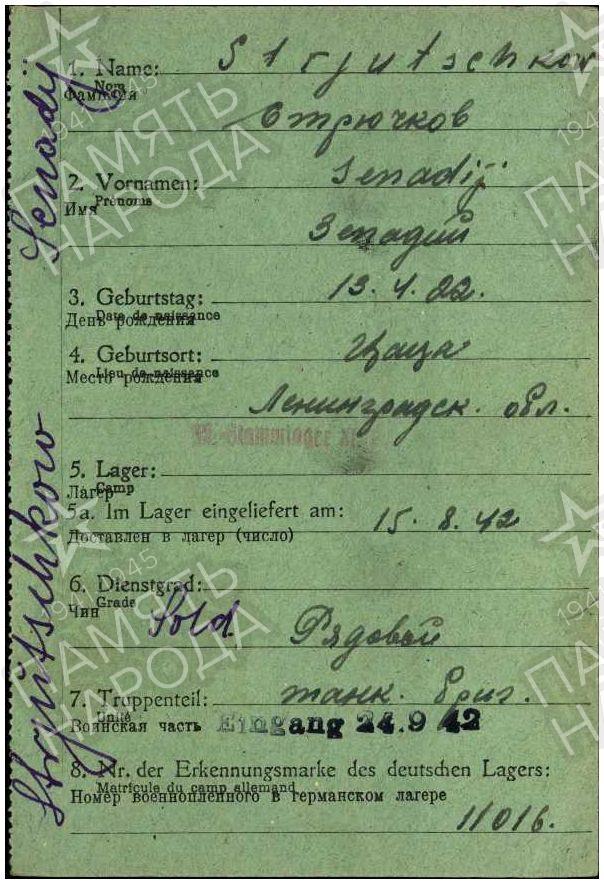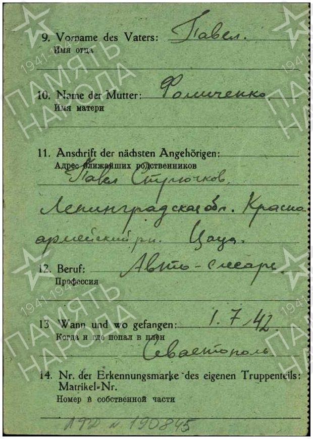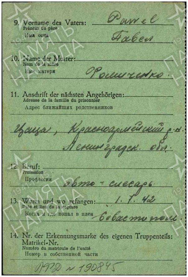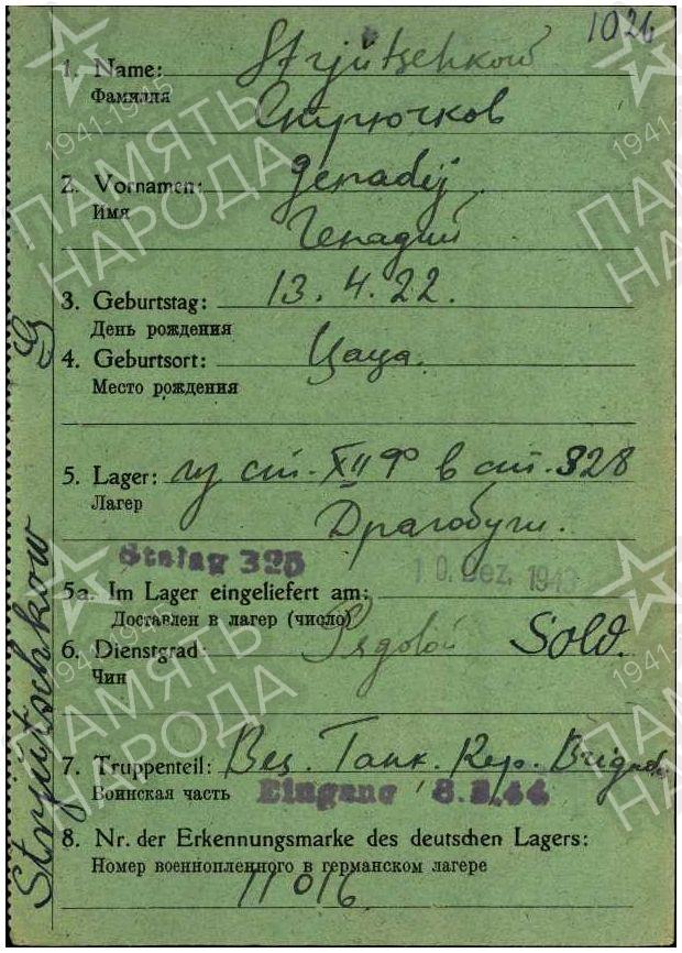 Место заключения:шталаг XII F, шталаг 328, шталаг 325