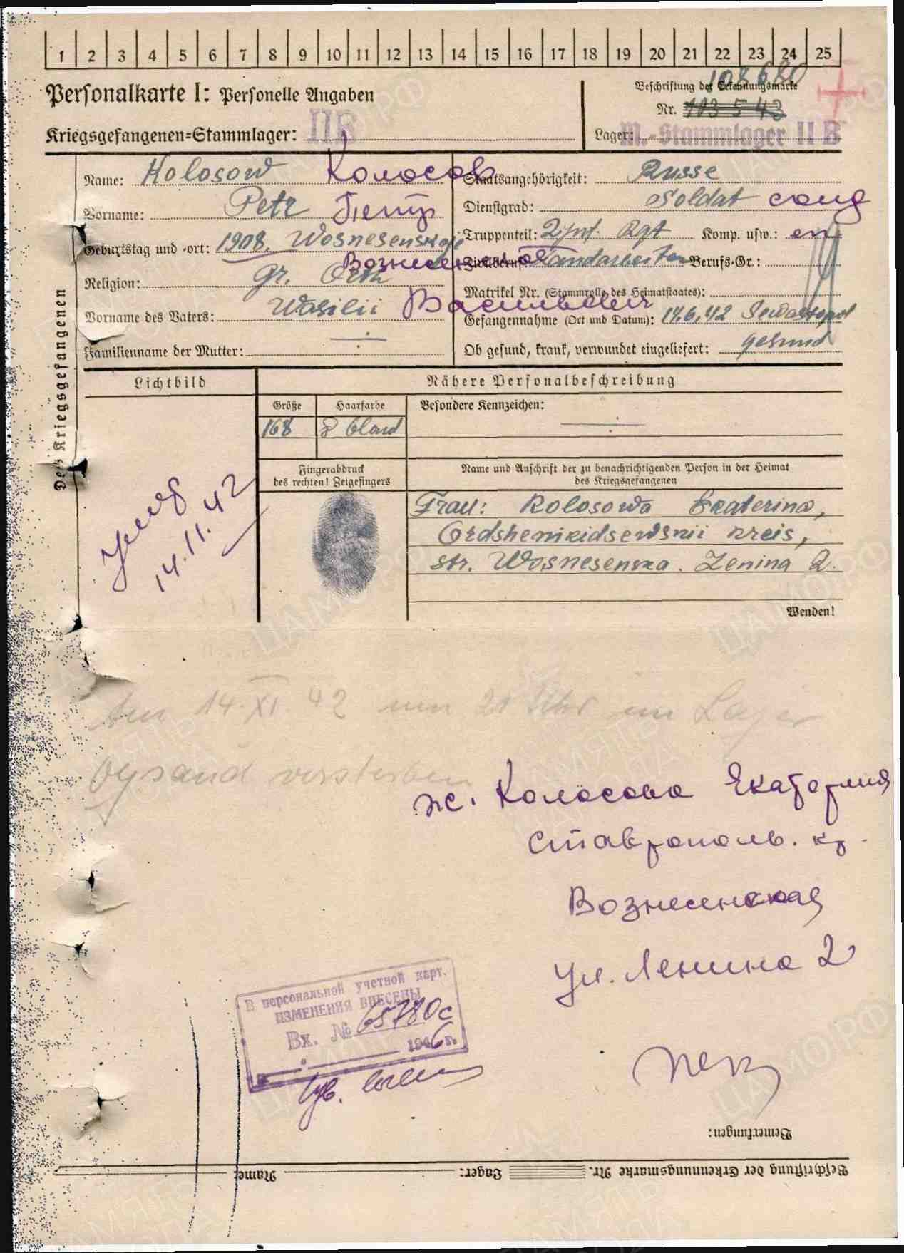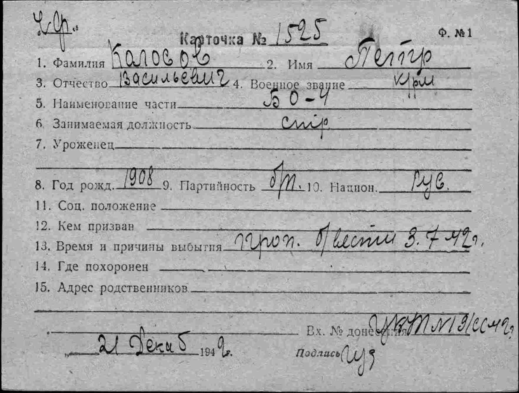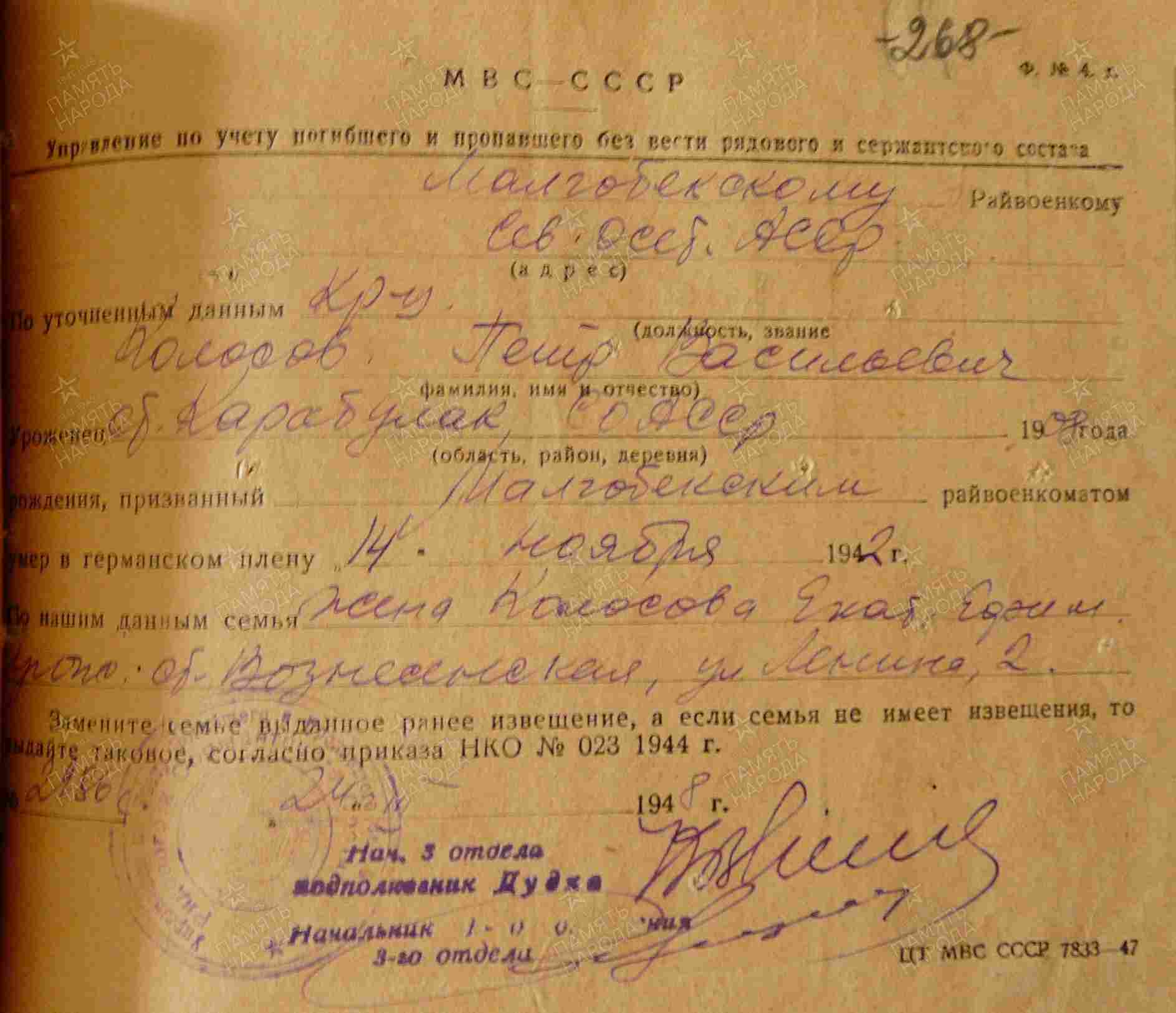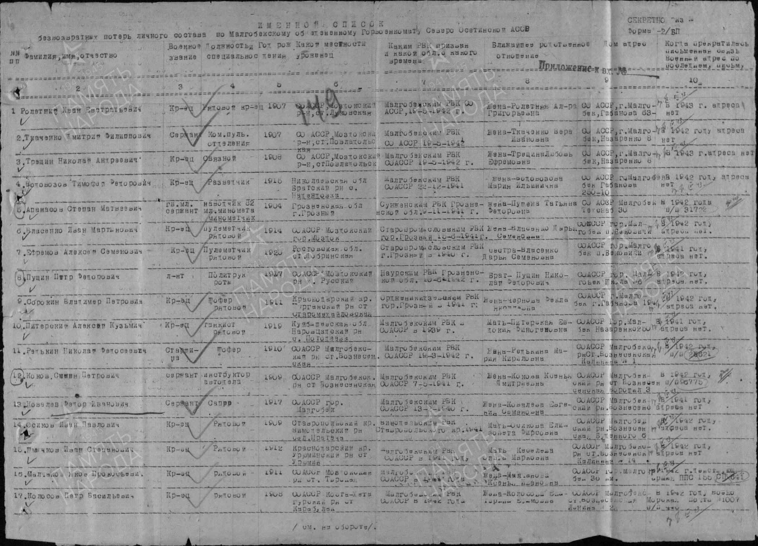 Дополнительно: Дата призыва: 1942 Место призыва: Малгобекский РВК, Северо-Осетинская АССР, Малогобекский р-н