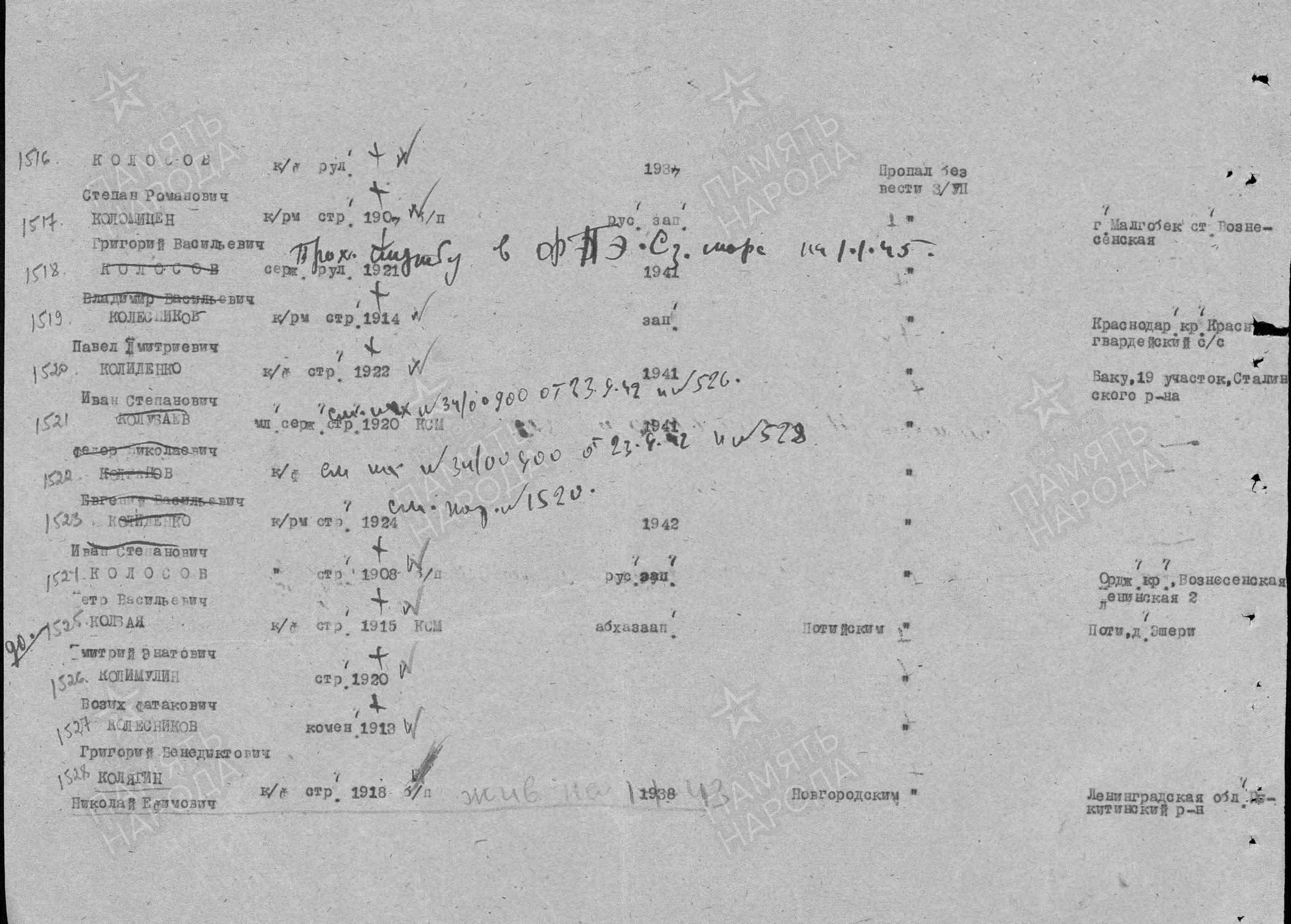 Информация: ЦВМА Картотека безвозвратных потерь; ЦВМА ф.1250,о.2,д.137; ЦАМО ф.58,о.18004,д.348; ВК Республики Ингушетия, о.1948,д.22/2; ЦАМО ф.58,о.977521,д.1958