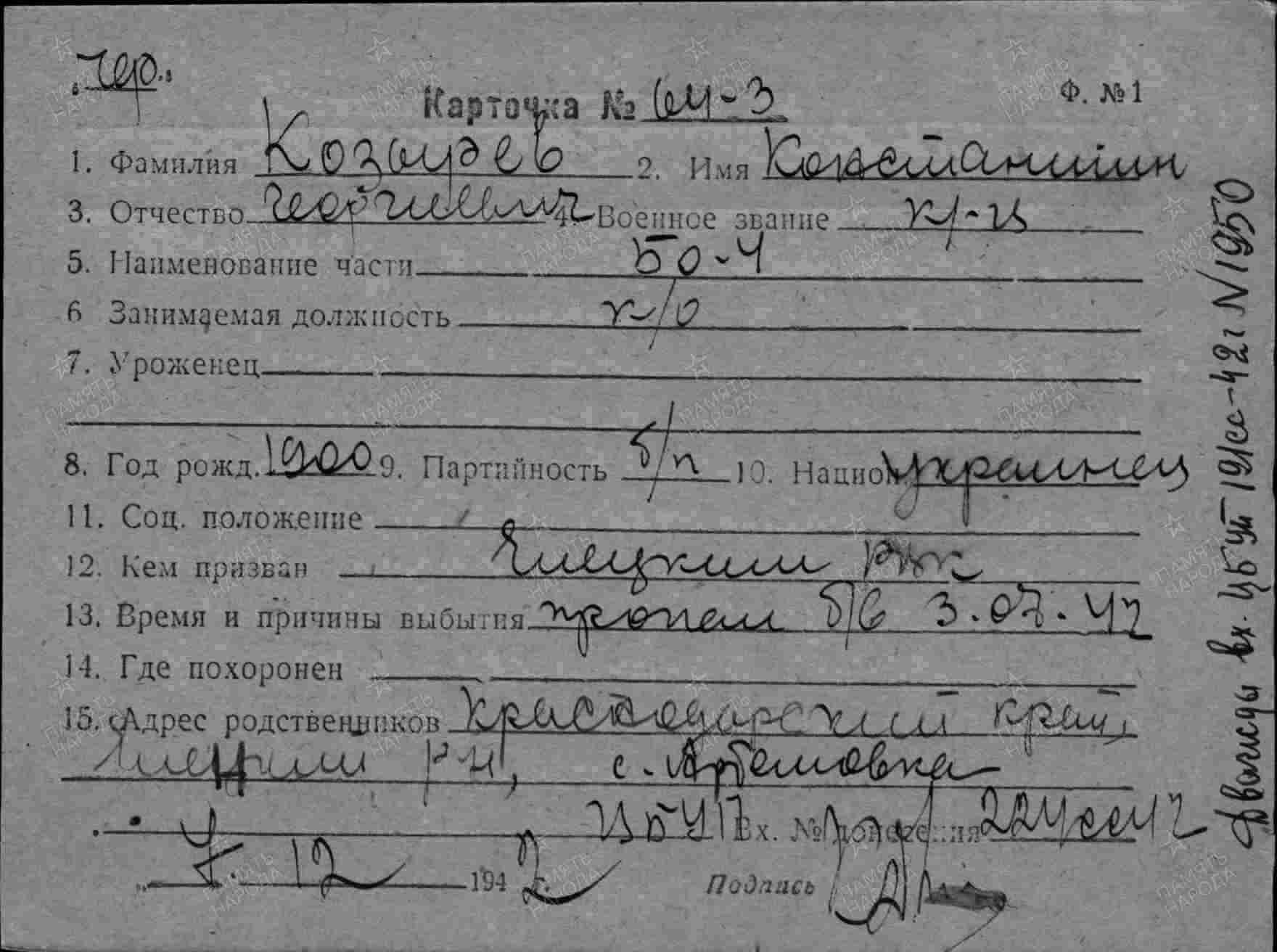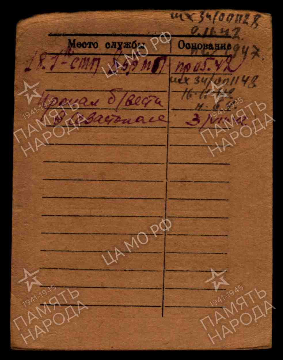 Информация: ЦВМА Картотека безвозвратных потерь; ЦВМА документы; Архив Военно-Морского Флота, г. Гатчина, Филиал ЦАМО. Архив Военно-Морского Флота. Хранилище 3, ш.29,я.6; ЦАМО ф.58,о.977520,д.2318