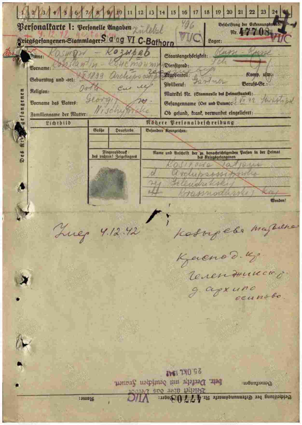 Дополнительно: Место призыва: Елецкий РВК, Орловская обл., Елецкий р-н