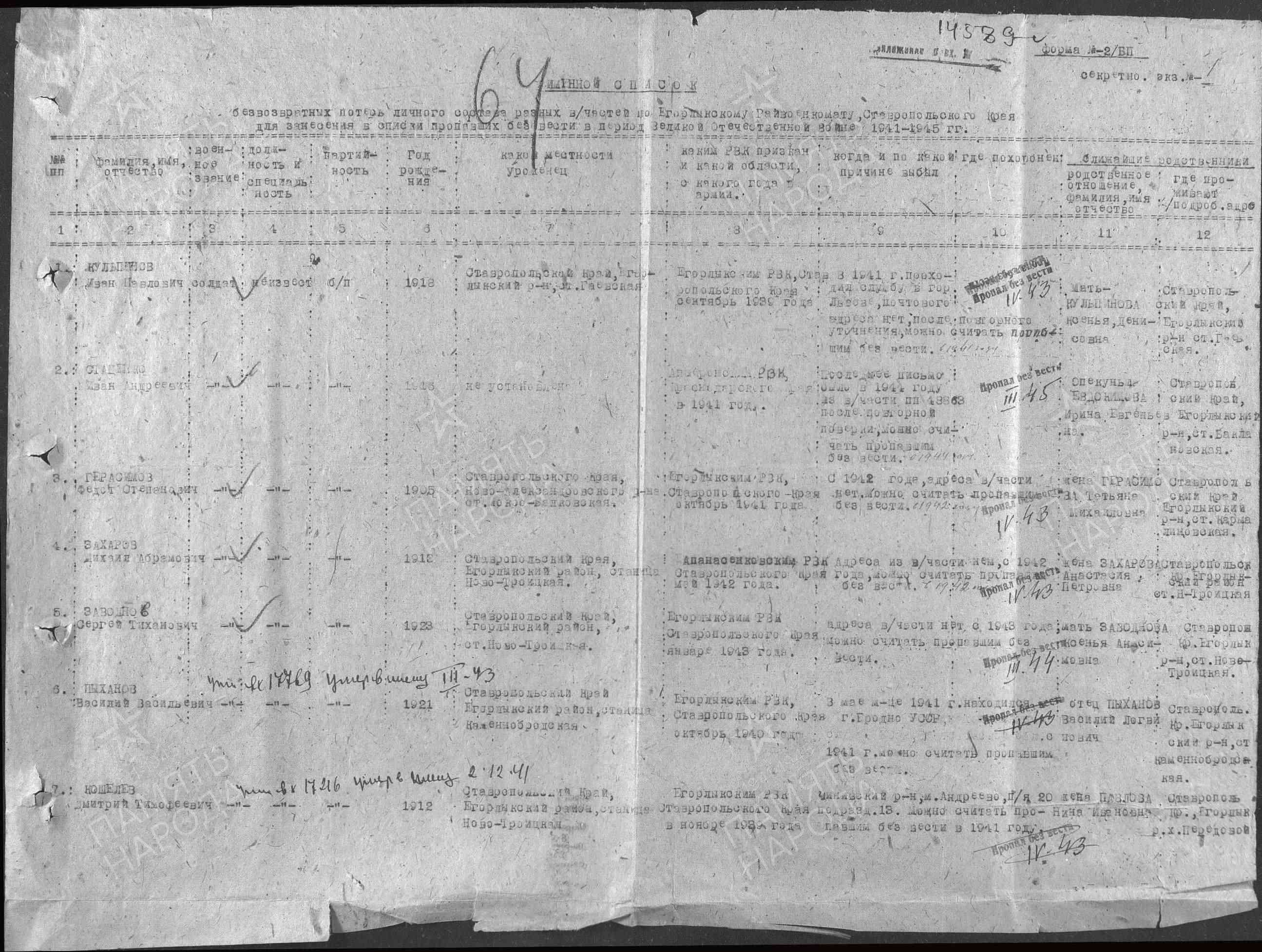 Дата призыва: 10.1941 Место призыва: Егорлыкский РВК, Ставропольский край, Егорлыкский р-н