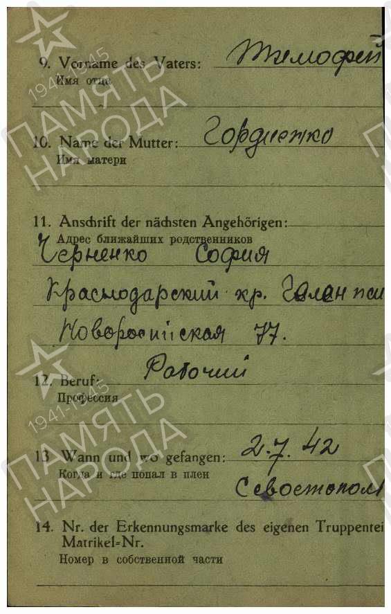 ЦАМО ф.58,о.18004,д.2472; ЦАМО ф.58,о.977520,д.2649; Архив ФСБ - Краснодарский край, д.22_08_а; ЦАМО ф.58,о.18003,д.1609