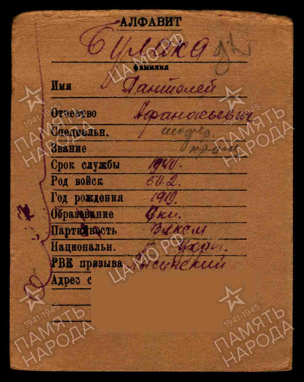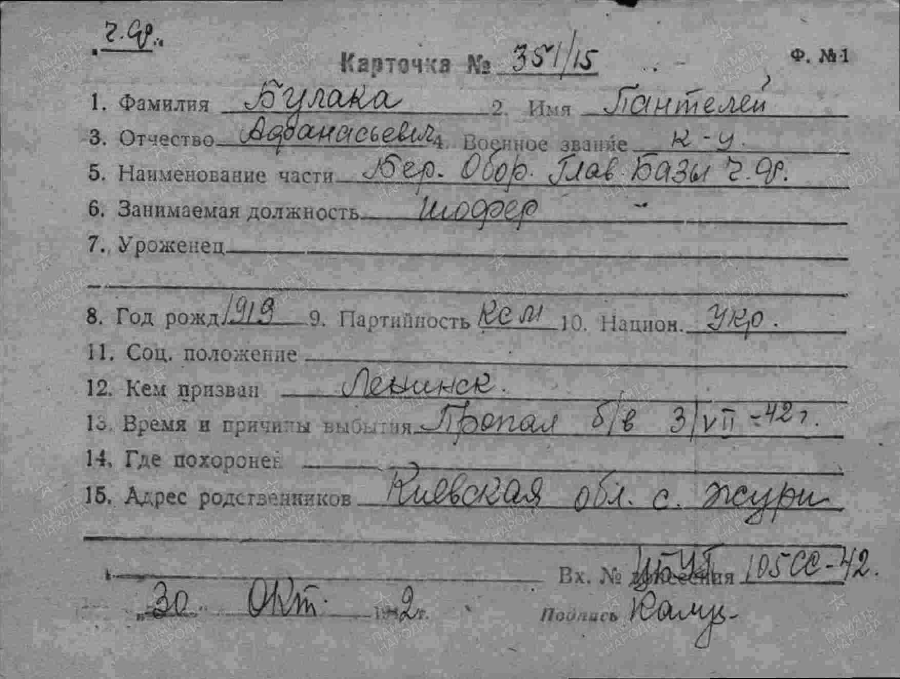 Ф.И.О.: Булака (Булыка, Булика) Пантелей Афанасьевич