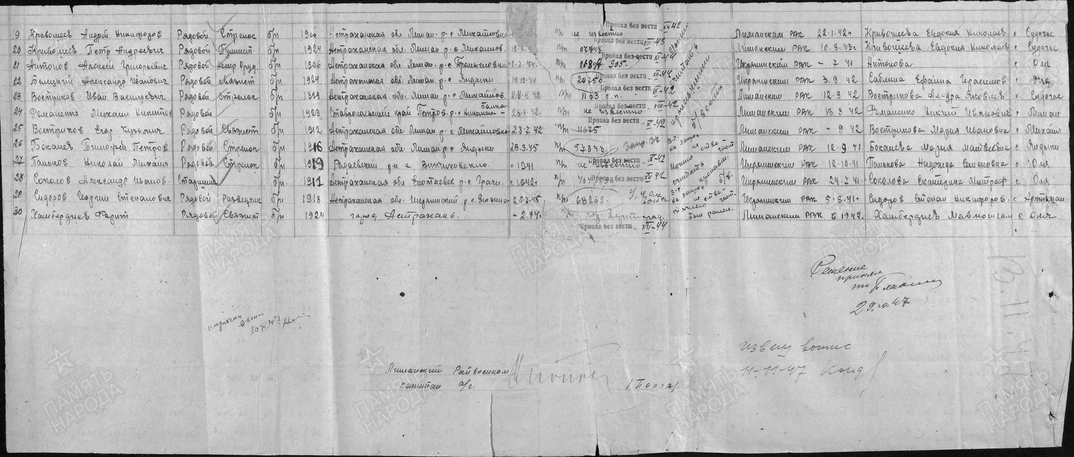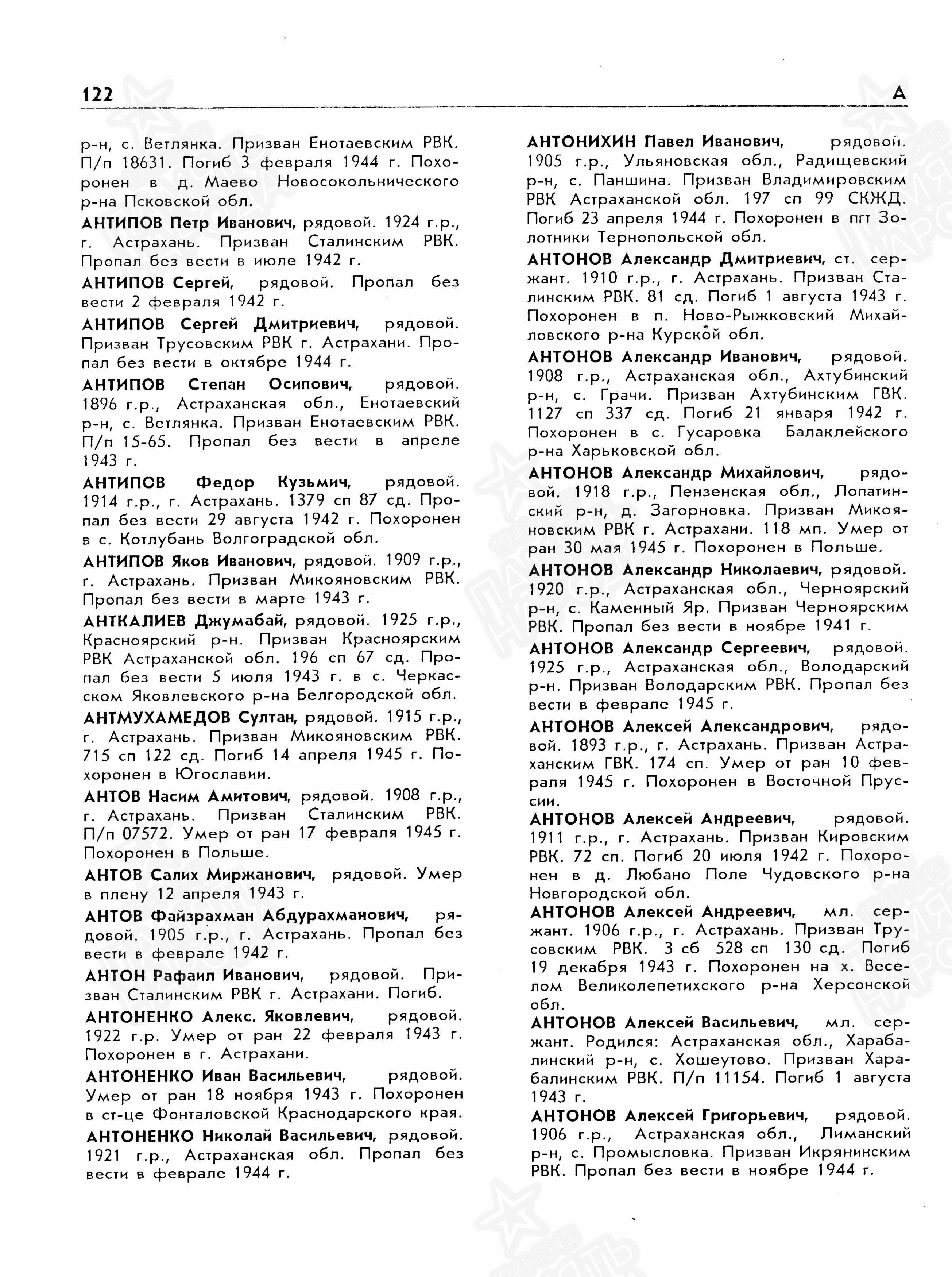 ЦАМО ф.58,о.977520,д.830; Книга памяти. Астраханская область. Том 1, ЦАМО ф.58,о.977521,д.1405; ЦАМО ф.58,о.18003,д.1609