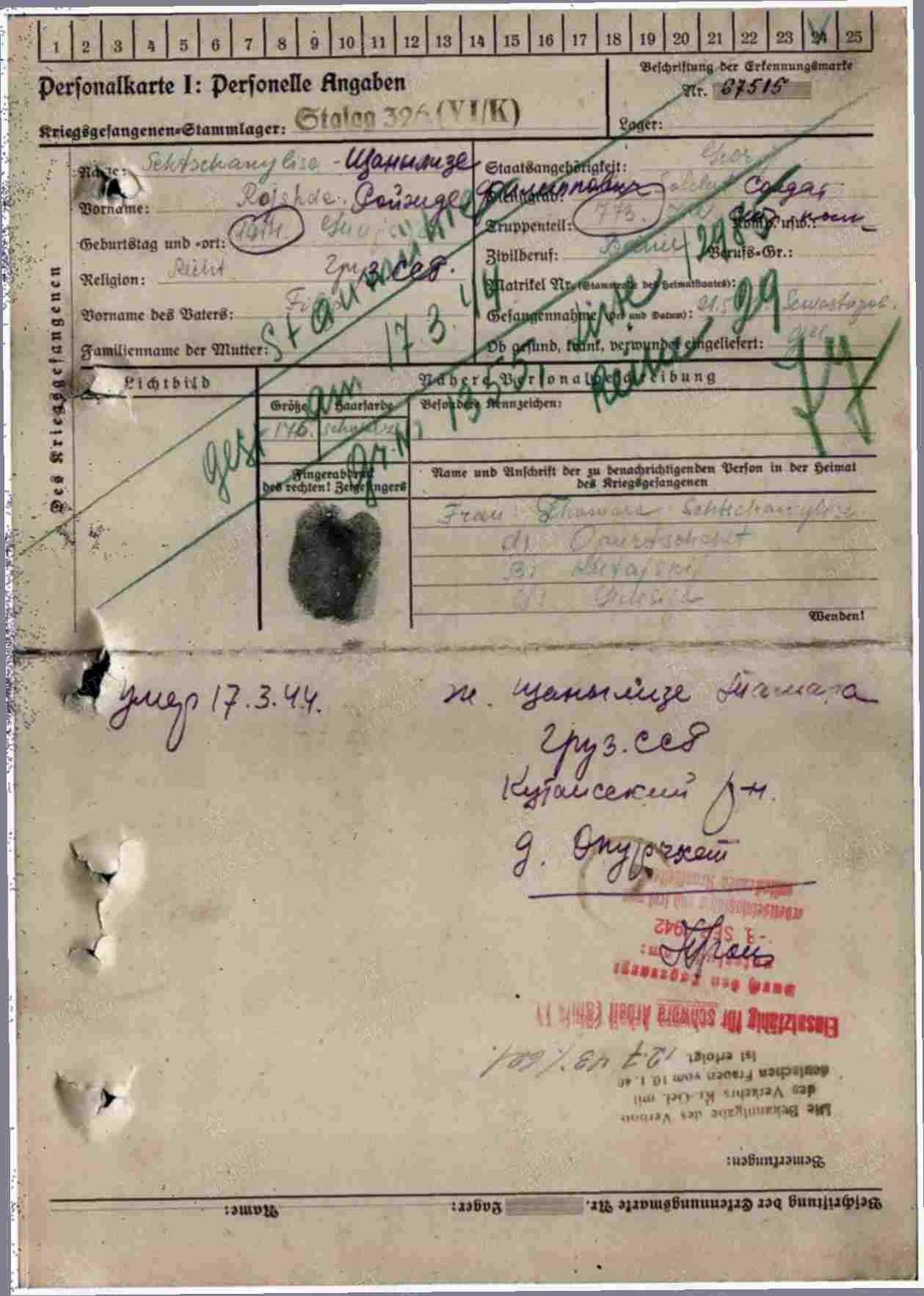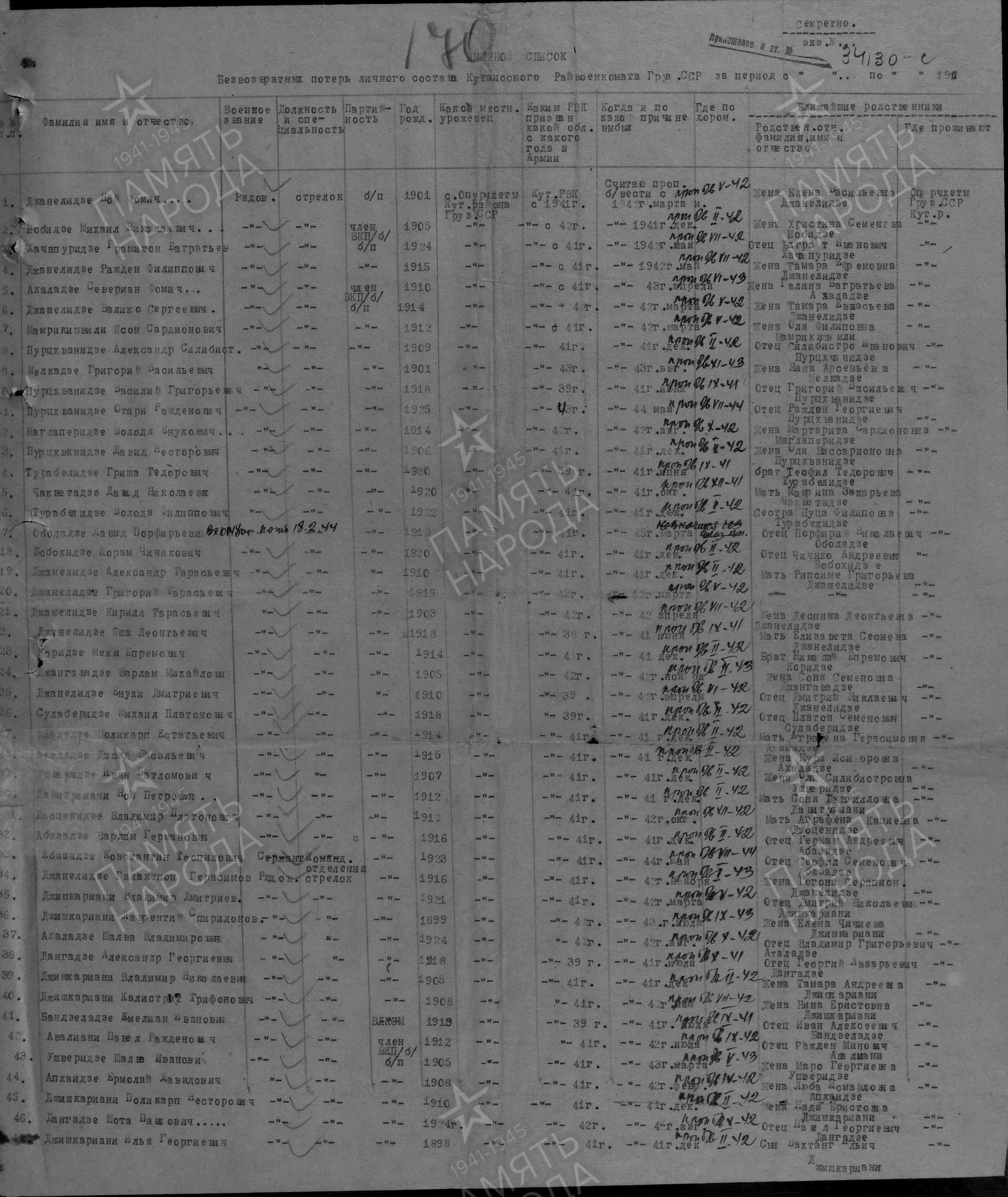 Дополнительно: Дата призыва: 1941 Место призыва: Кутаисский РВК, Грузинская ССР, Кутаисский р-н.