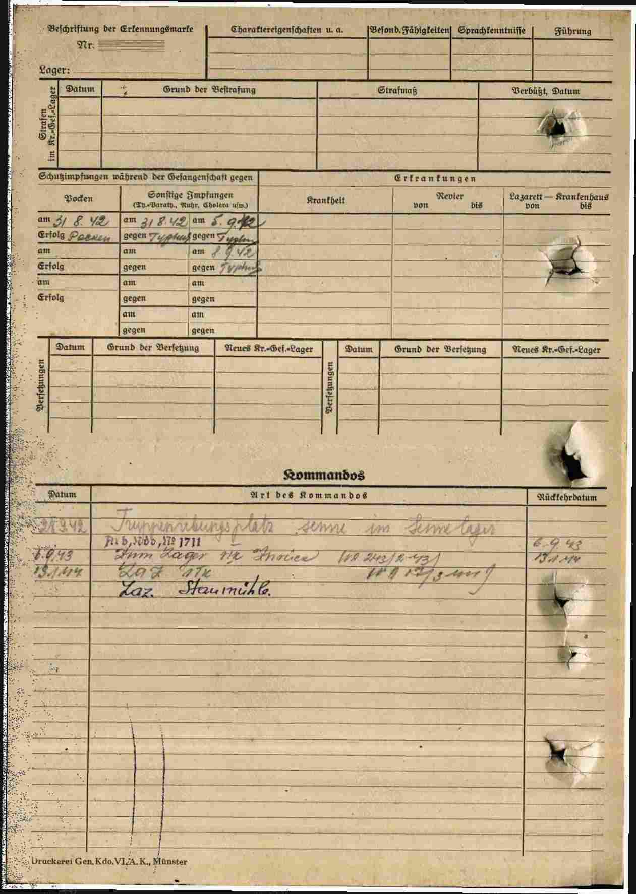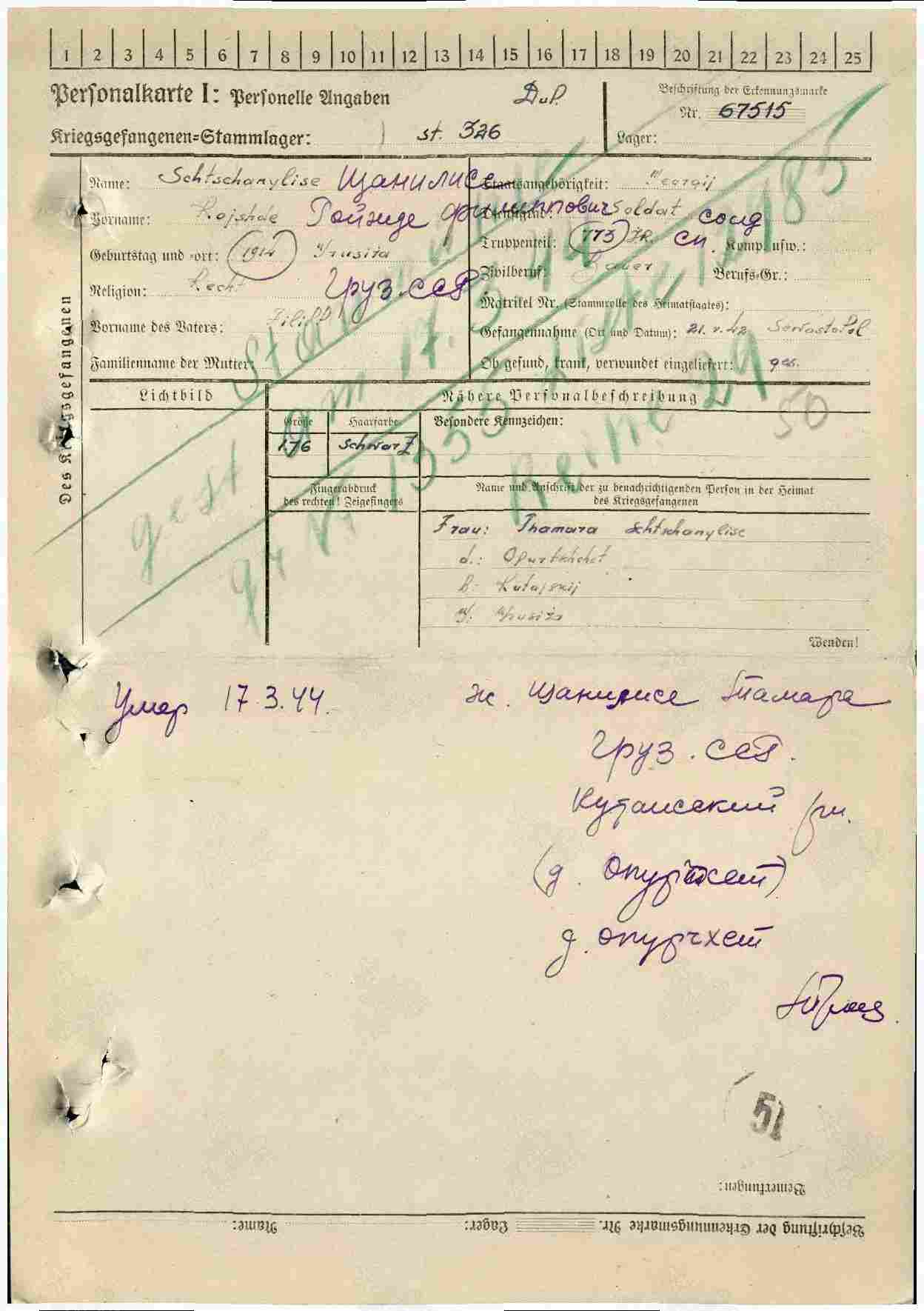 Место захоронения: Фореллькруг/Зенне, могила 1355, список 12985, ряд 29