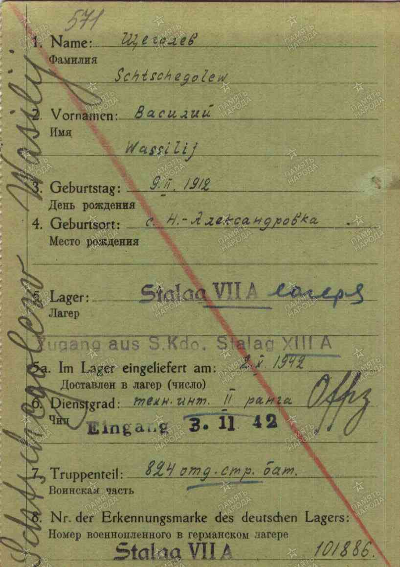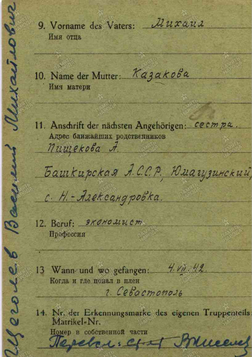 Архив: Основной, ф.033,о.0737292с,д.0110; ЦАМО Картотека военнопленных офицеров