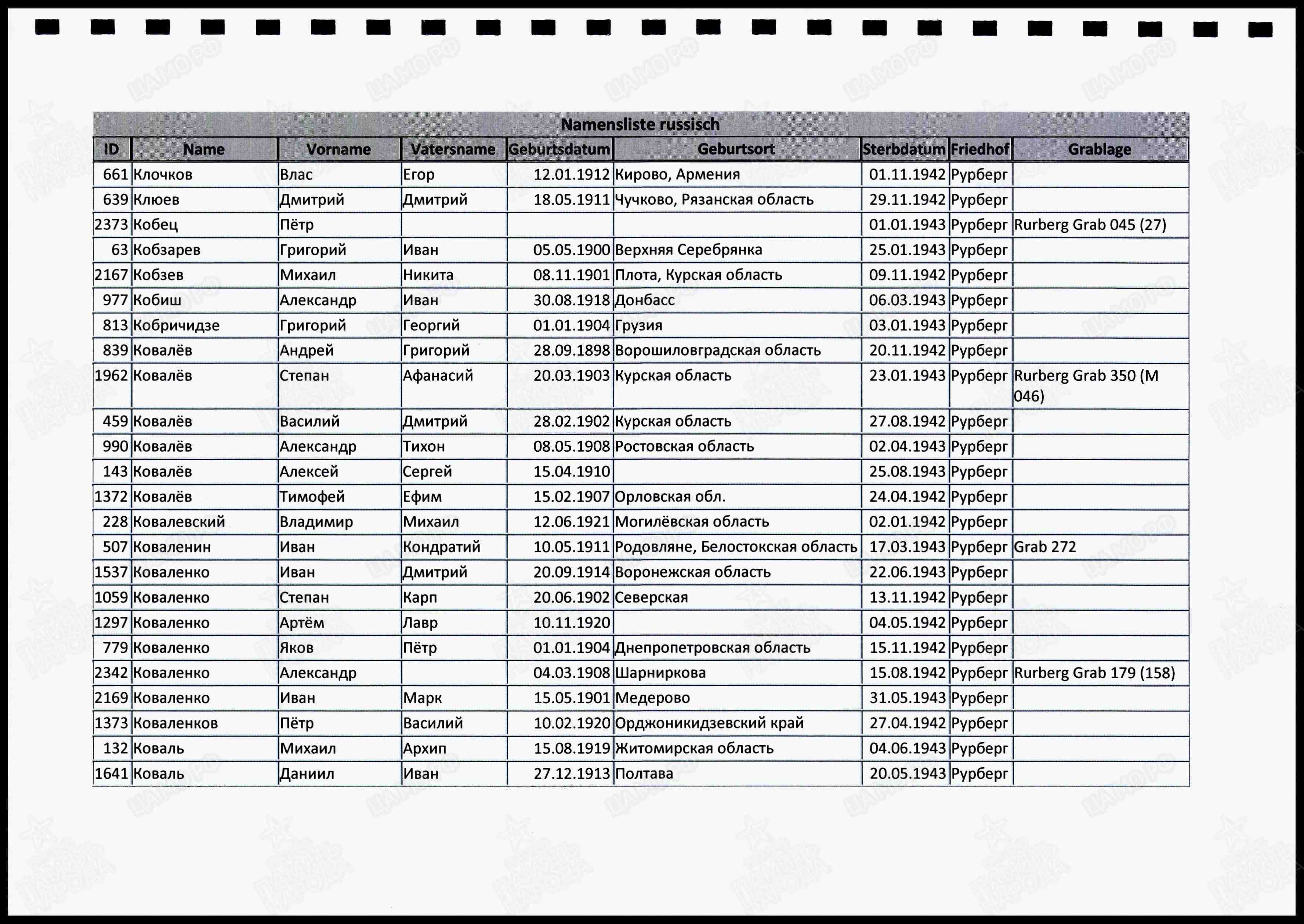 Дополнительно: Страна захоронения ФРГ. Регион захоронения Земля Северный Рейн-Вестфалия. Место захоронения административный округ Аахен, округ Моншау, община Зиммерат, 52152, Рурберг р-н, дорога L166 в направлении Кестерниха
