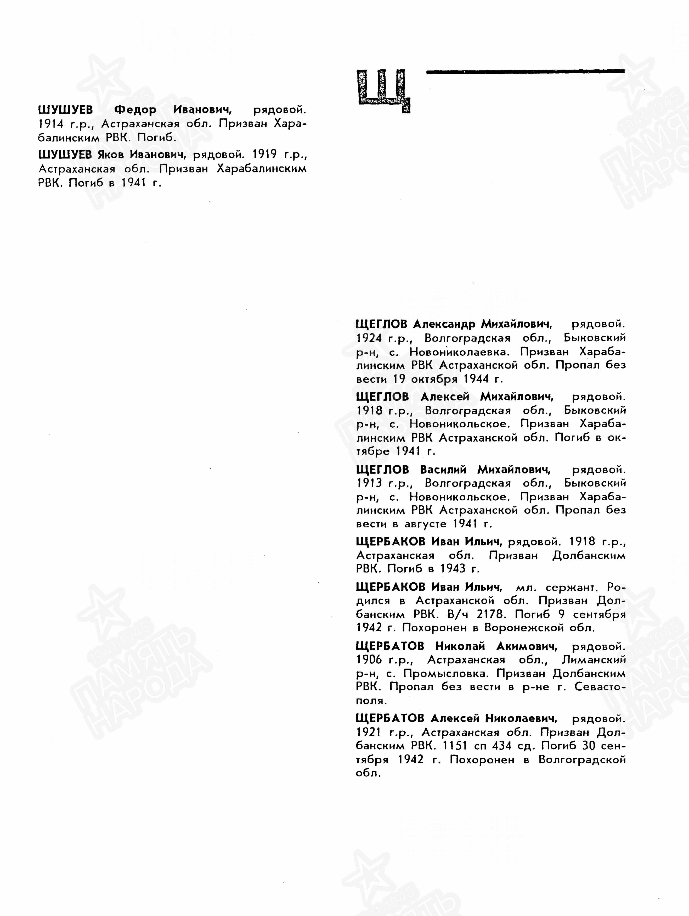 Книга памяти. Астраханская область. Том 6; ЦАМО ф.58,о.977521,д.2009