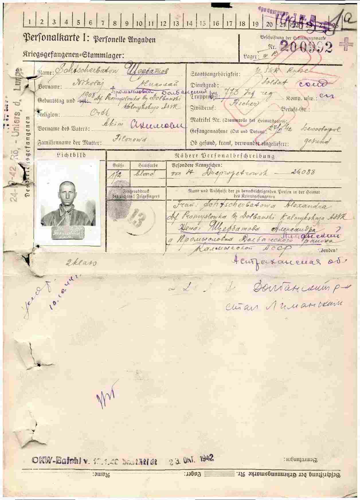 Карточка военнопленного.Лист2