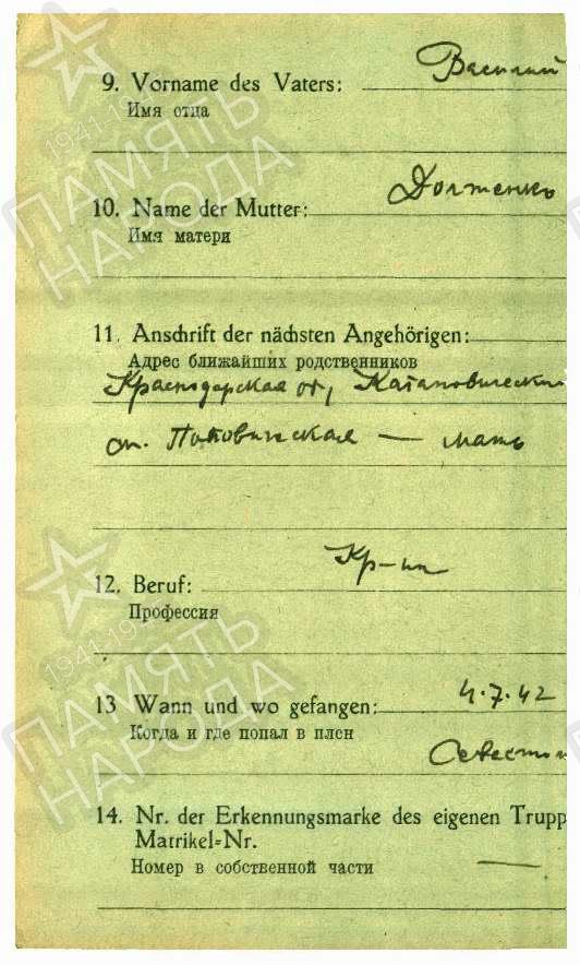 ЦАМО ф.58,о.18003,д.1392; ЦАМО ф.8284,о.486312,д.9; ЦАМО ф.8284,о.486312,д.5; Архив ФСБ - Краснодарский край, д.Ш Щ Э