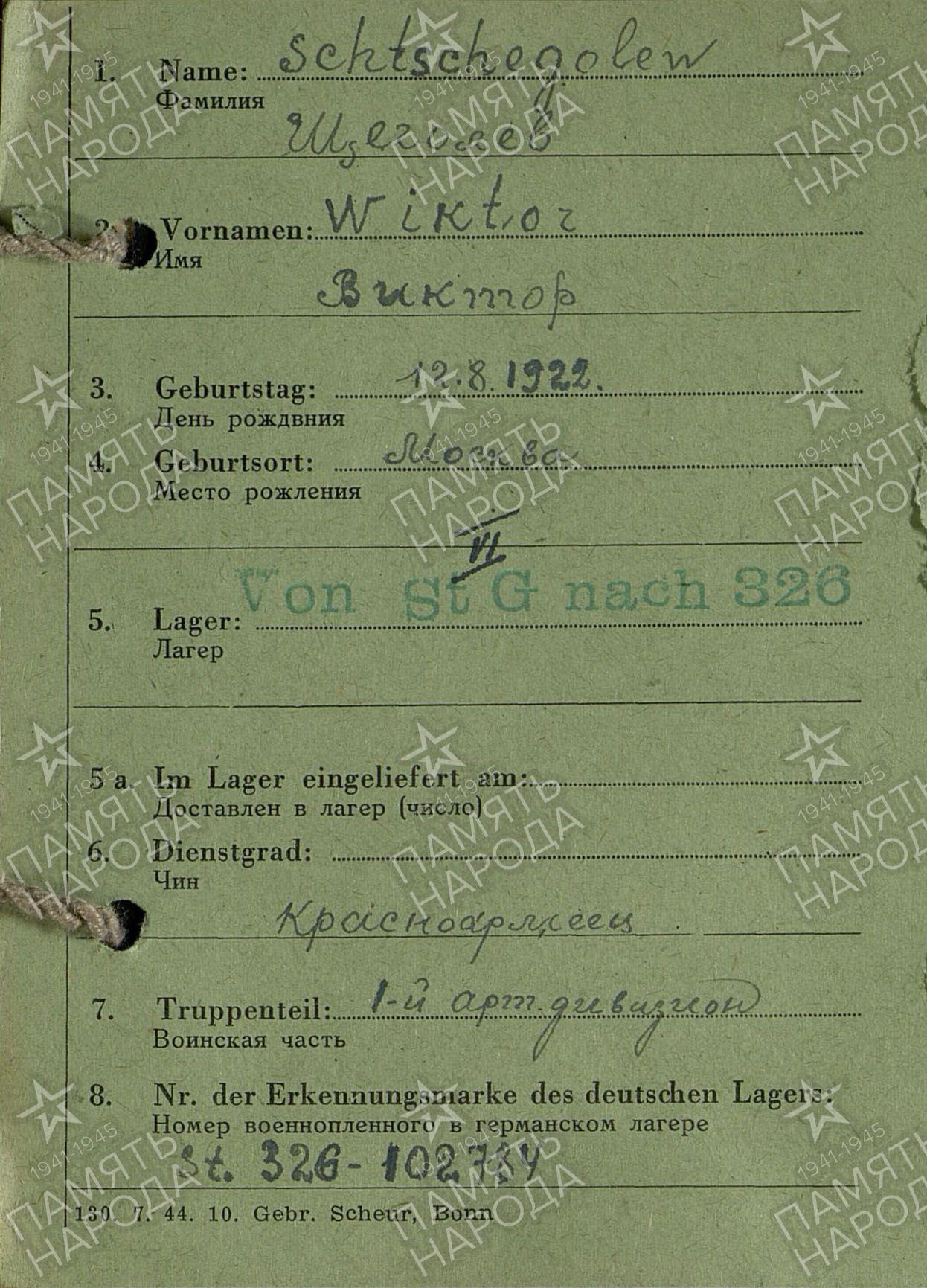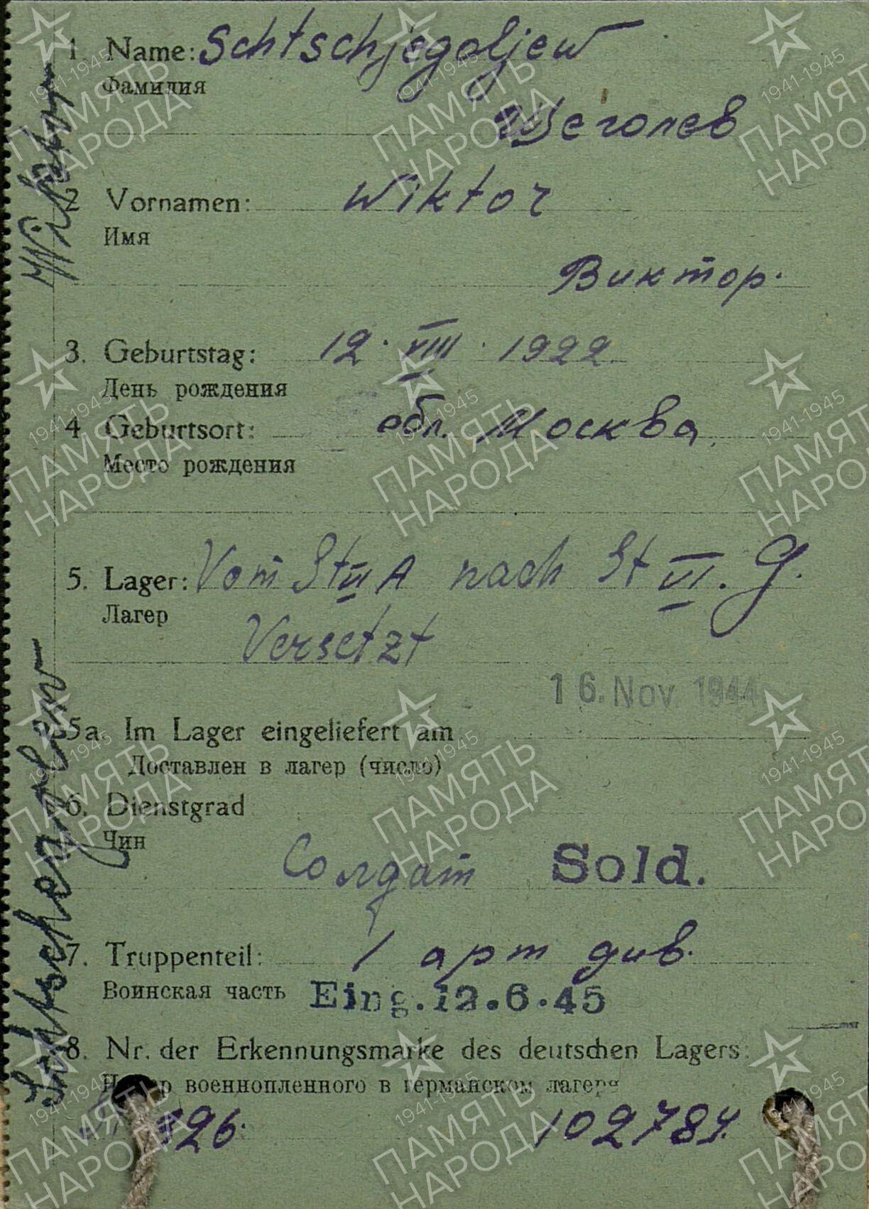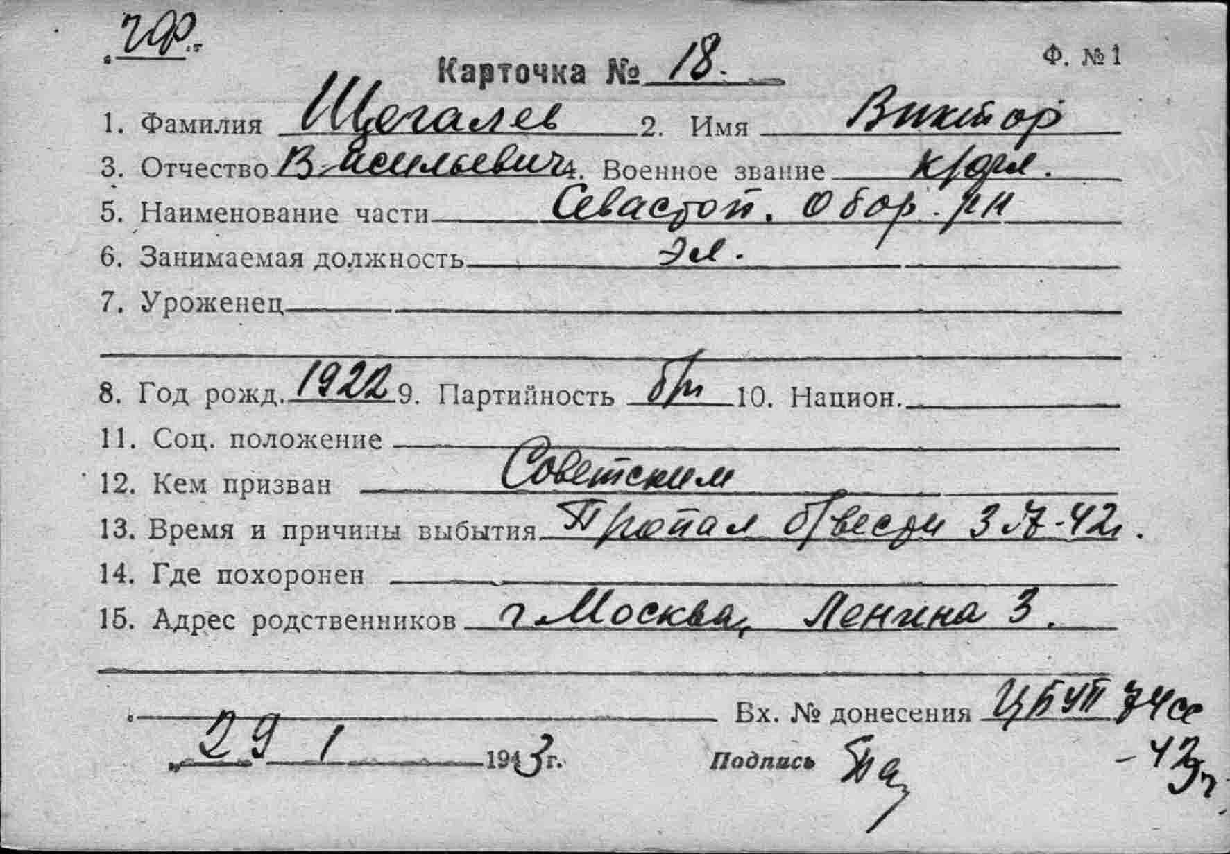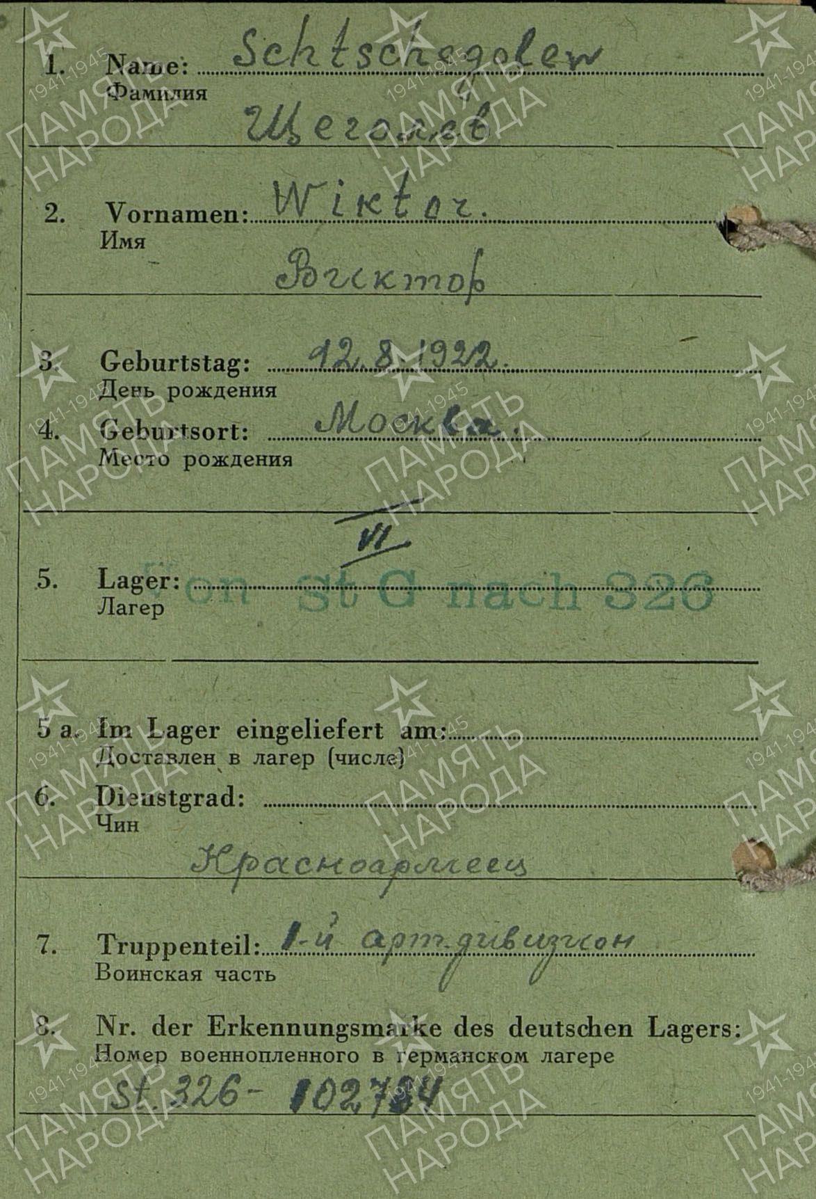 Ф.И.О.: Щегалев (Щеголев) Виктор Васильевич