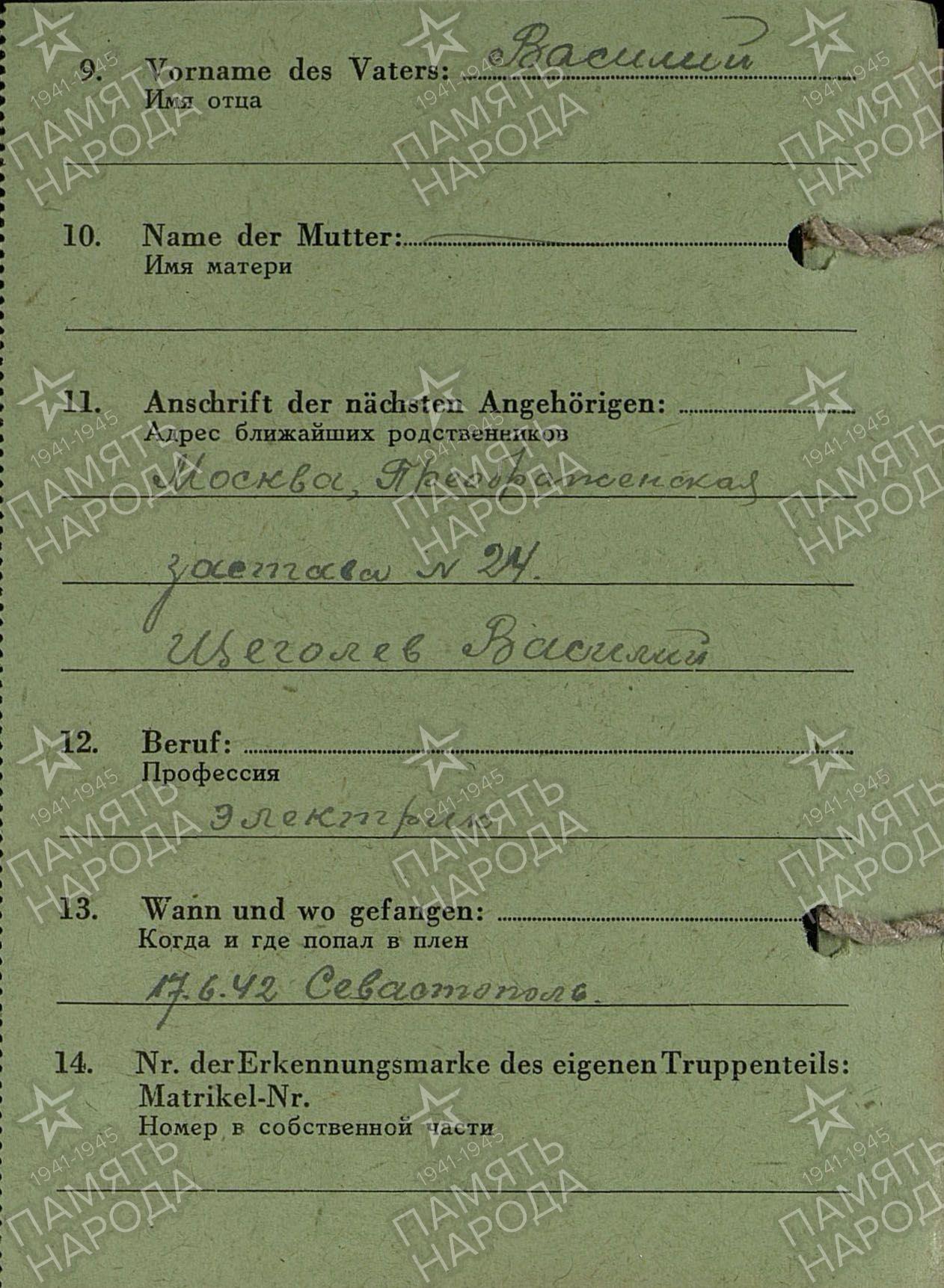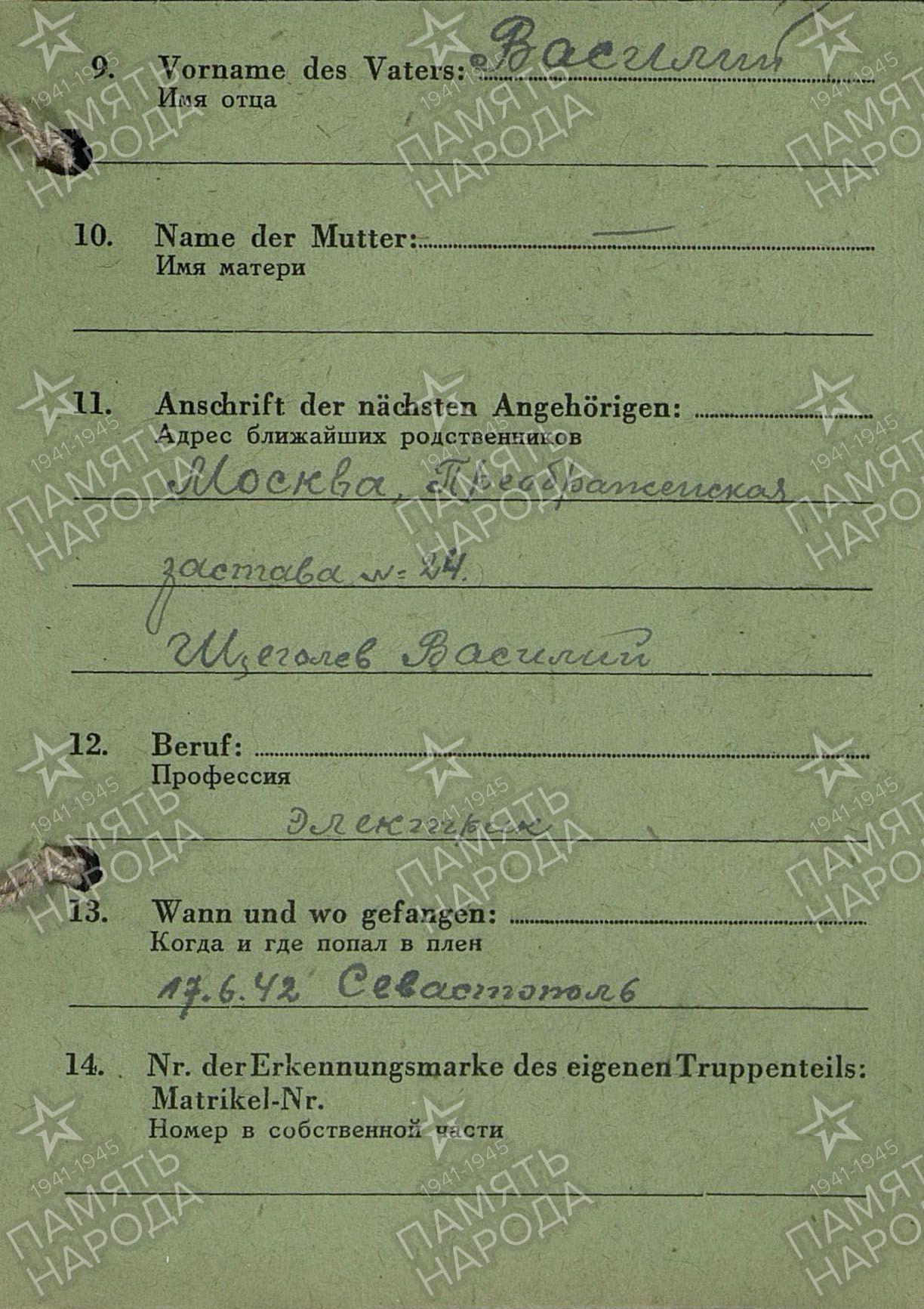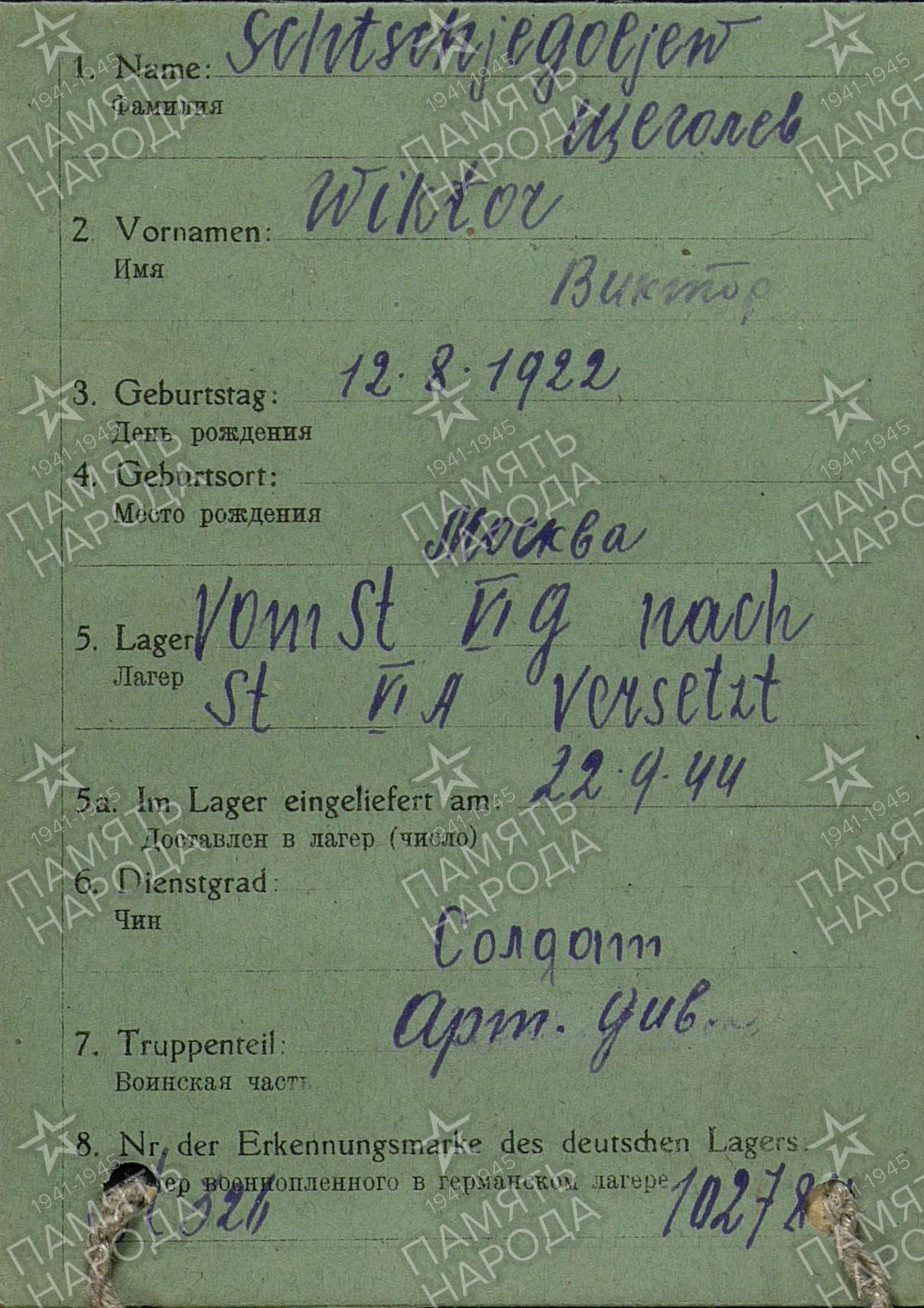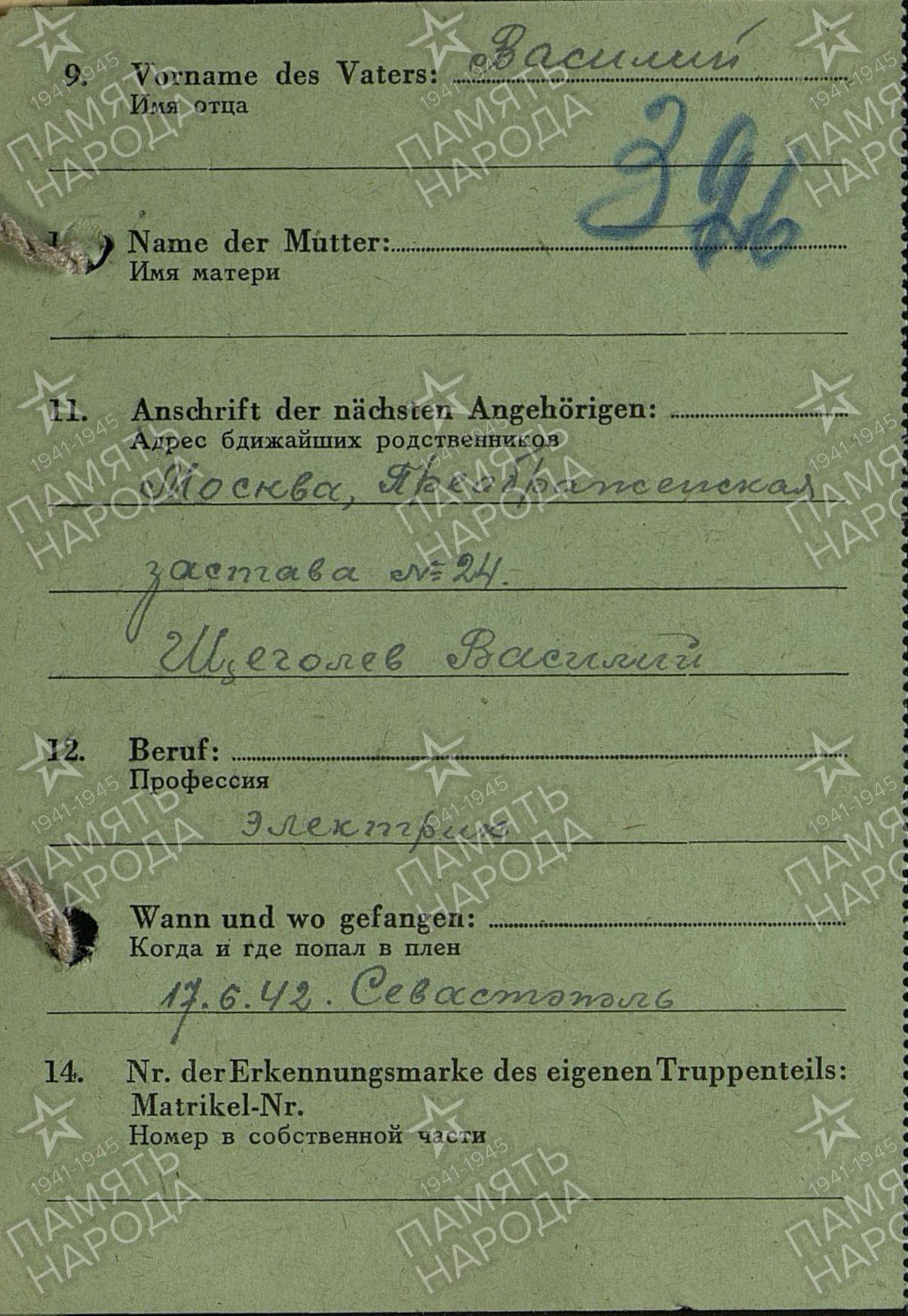 Ф.И.О.: Щегалев (Щеголев) Виктор Васильевич