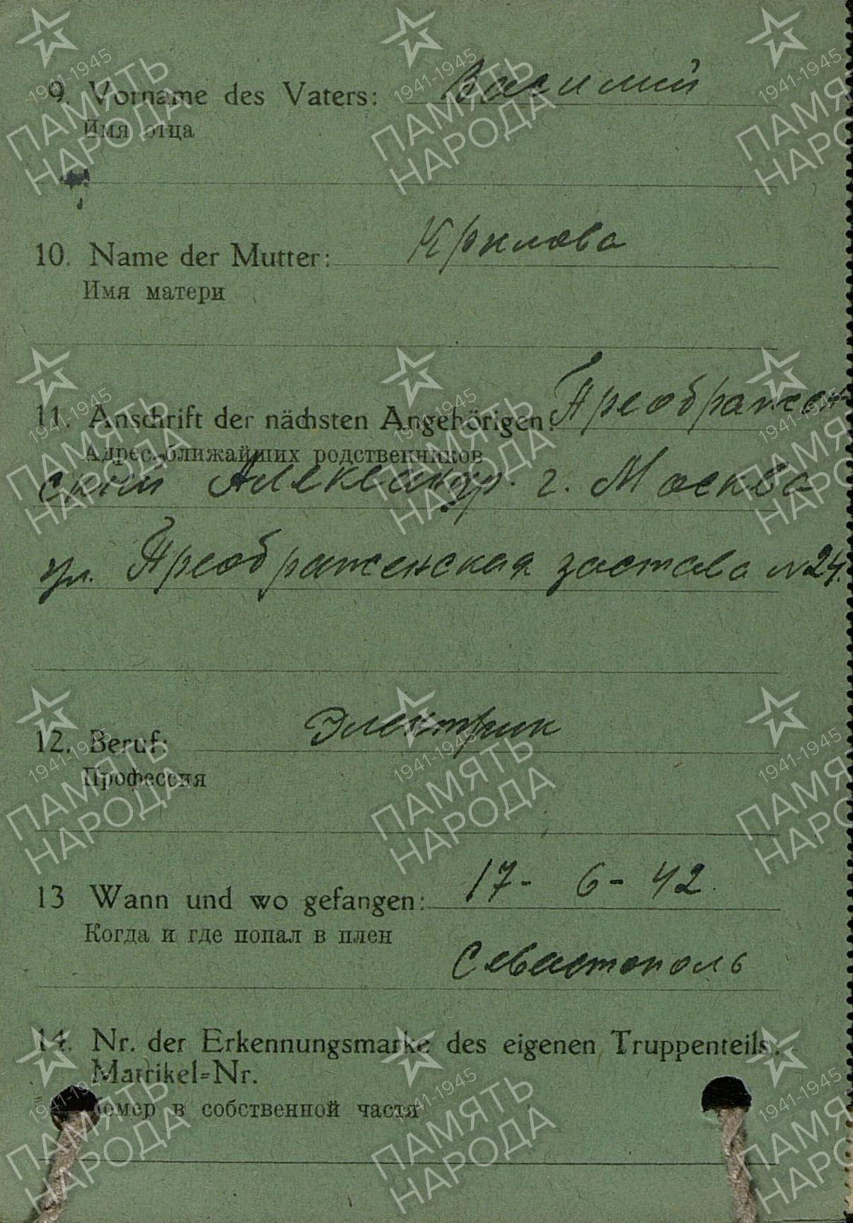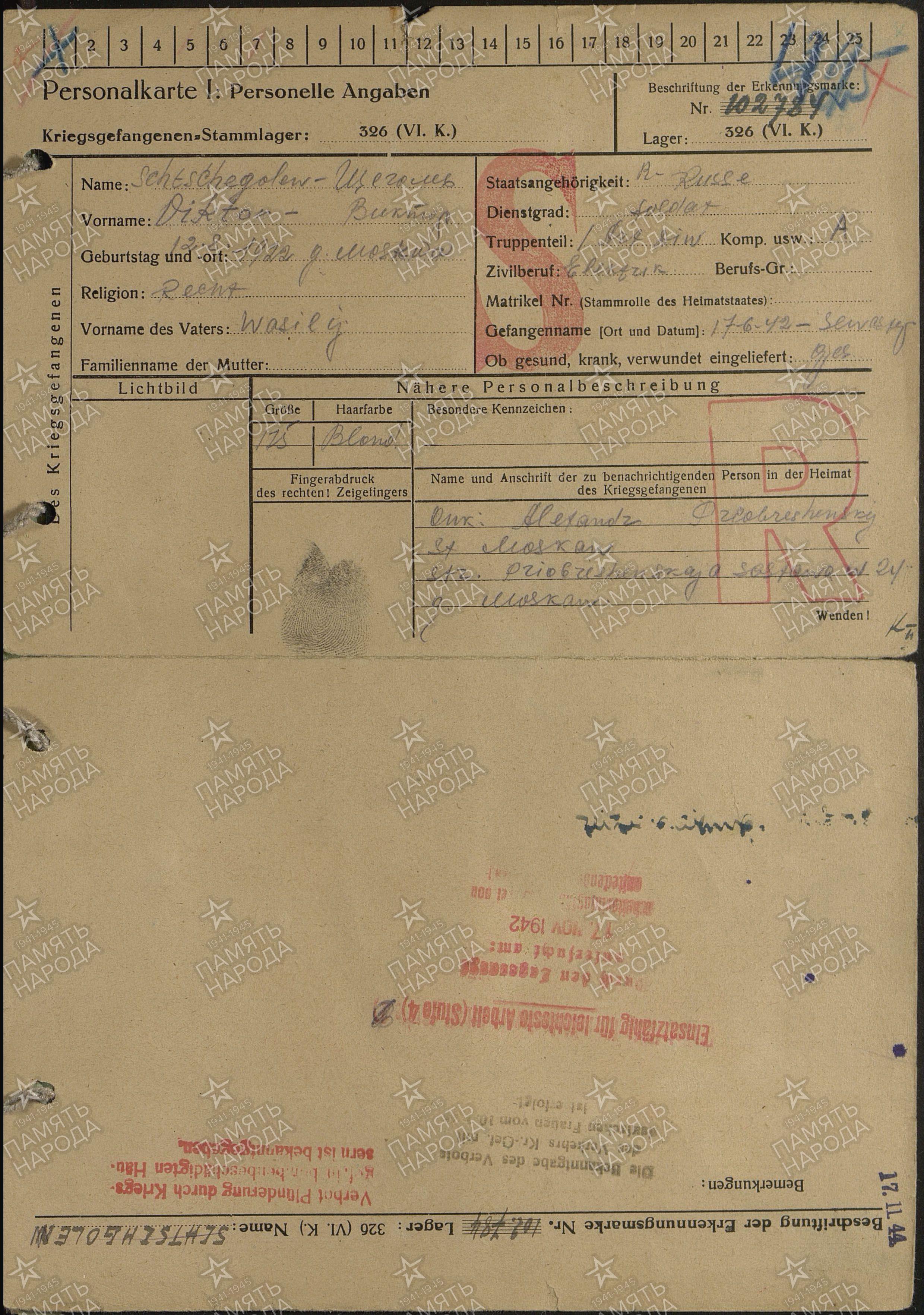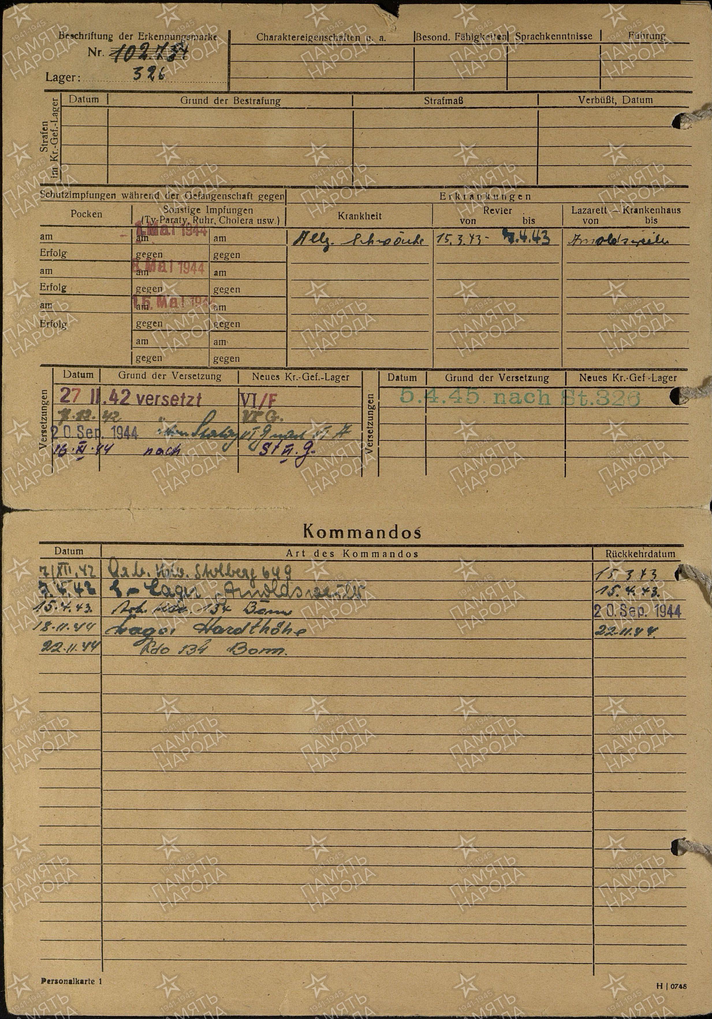 Место заключения: шталаг VI K (326), шталаг VI F, шталаг VI G, шталаг VI A