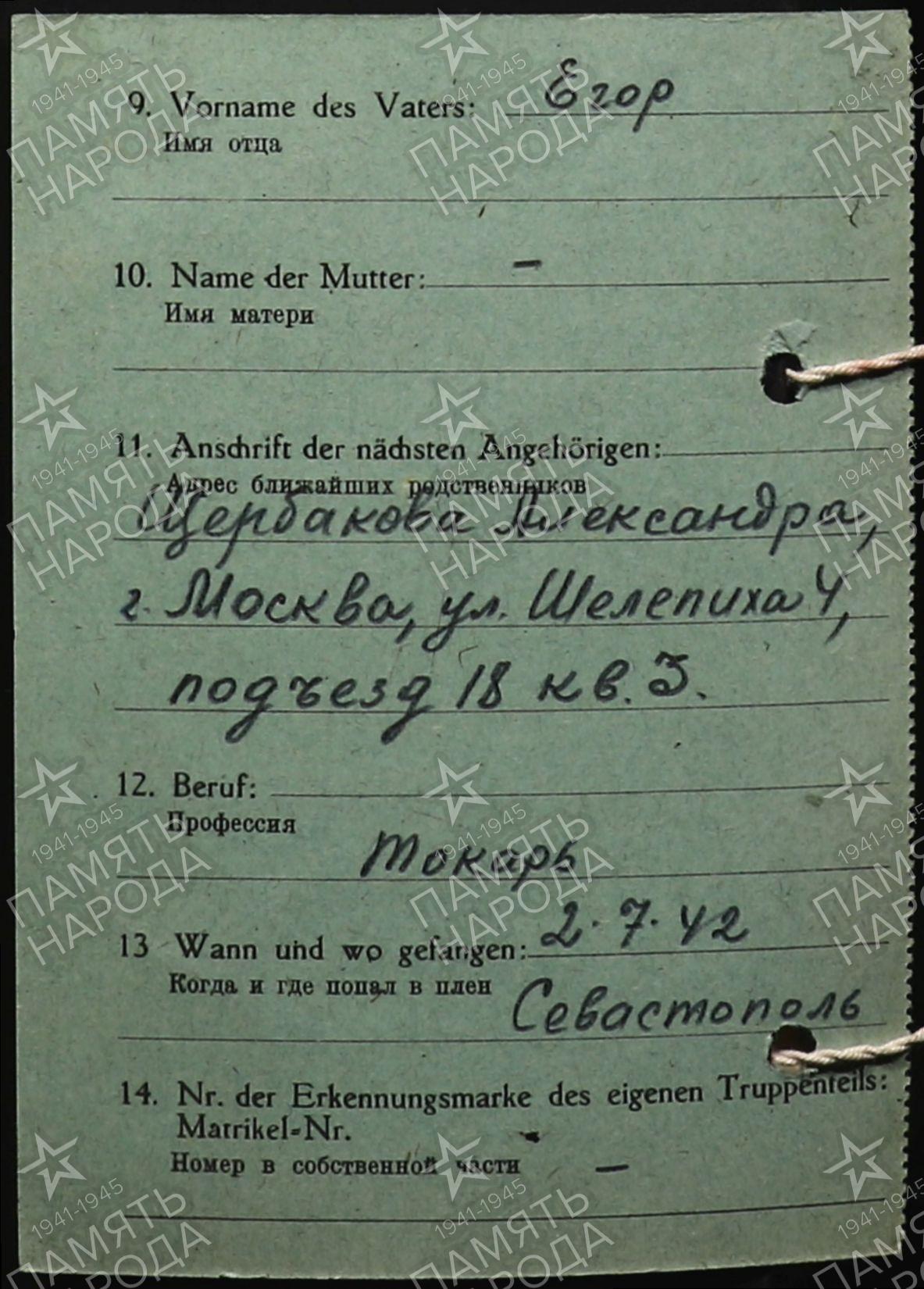 Карточка военнопленного.Лист2