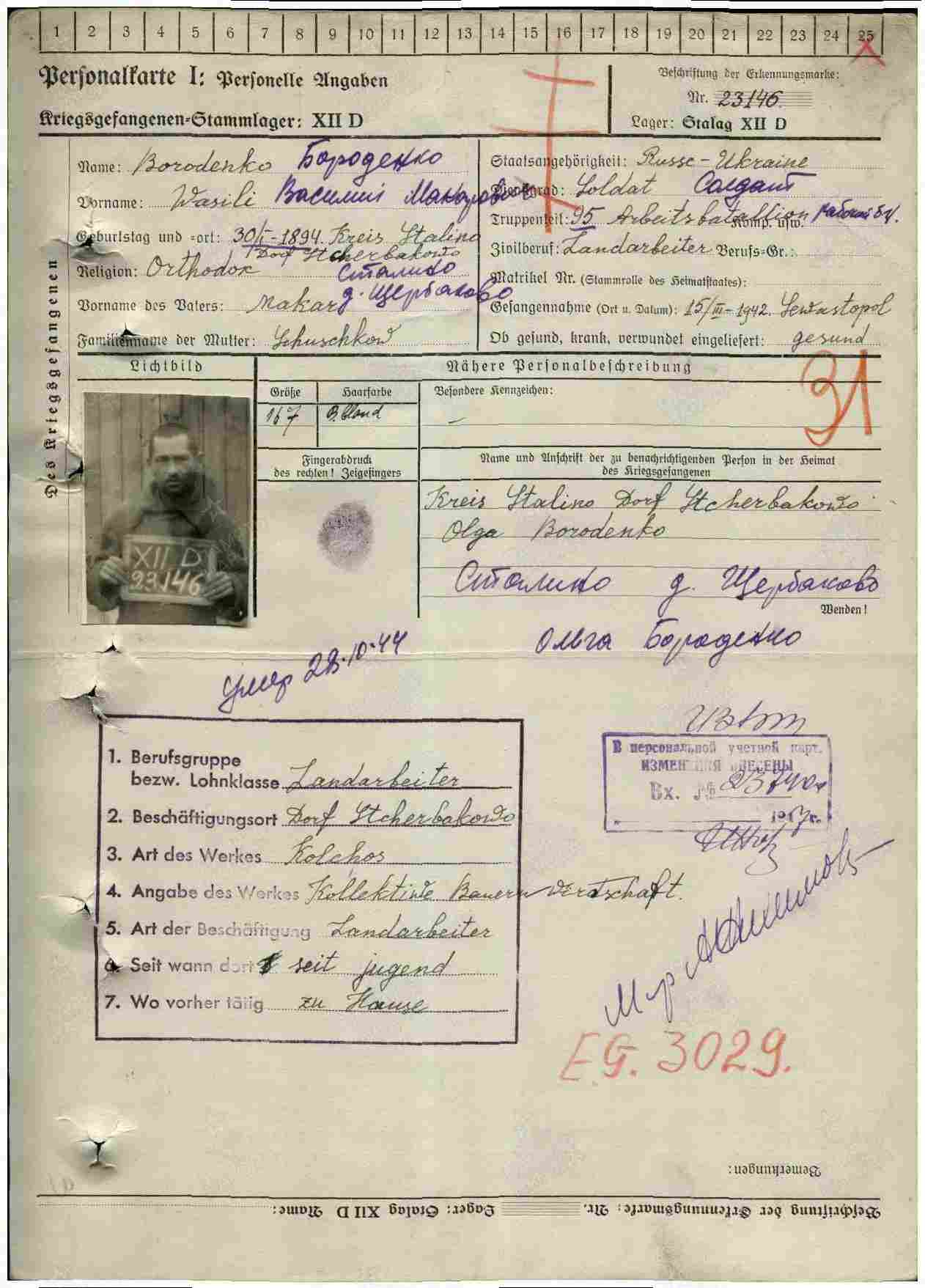 Дата и место пленения: 15.03.1942 Севастополь