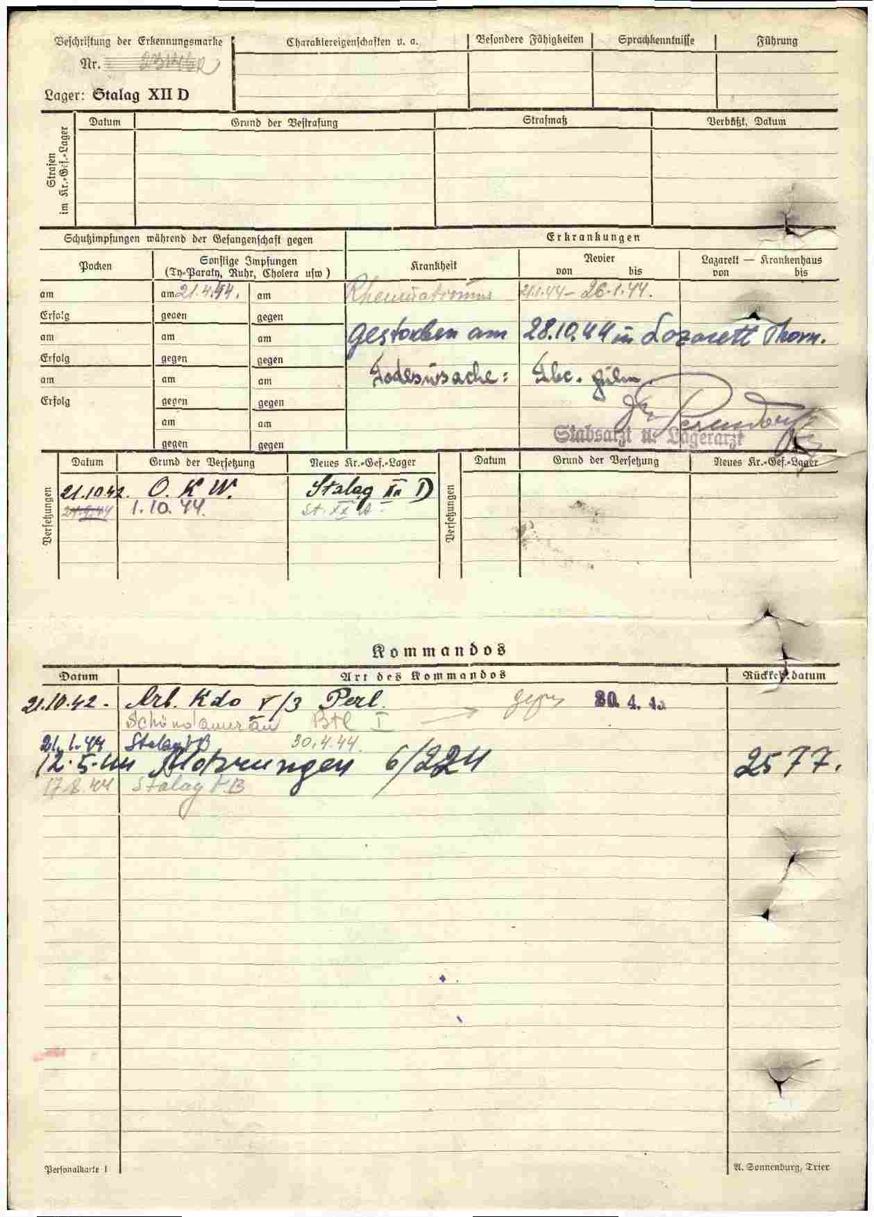 Место заключения: шталаг XII D