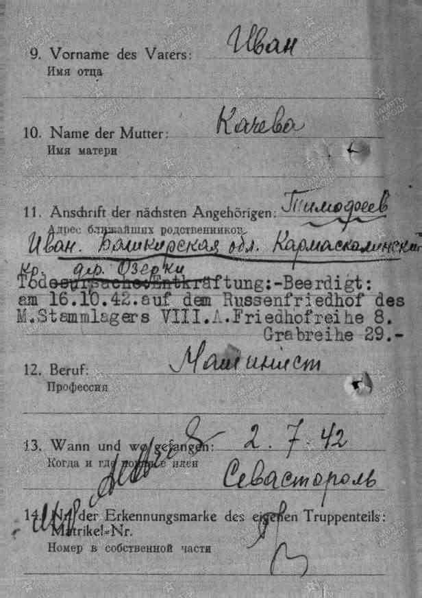 Место рождения: Башкирская АССР, Кармаскалинский р-н, Алайгирский с/с, Озерки
