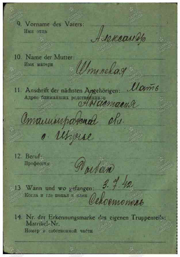 Карточка военнопленного.Лист2