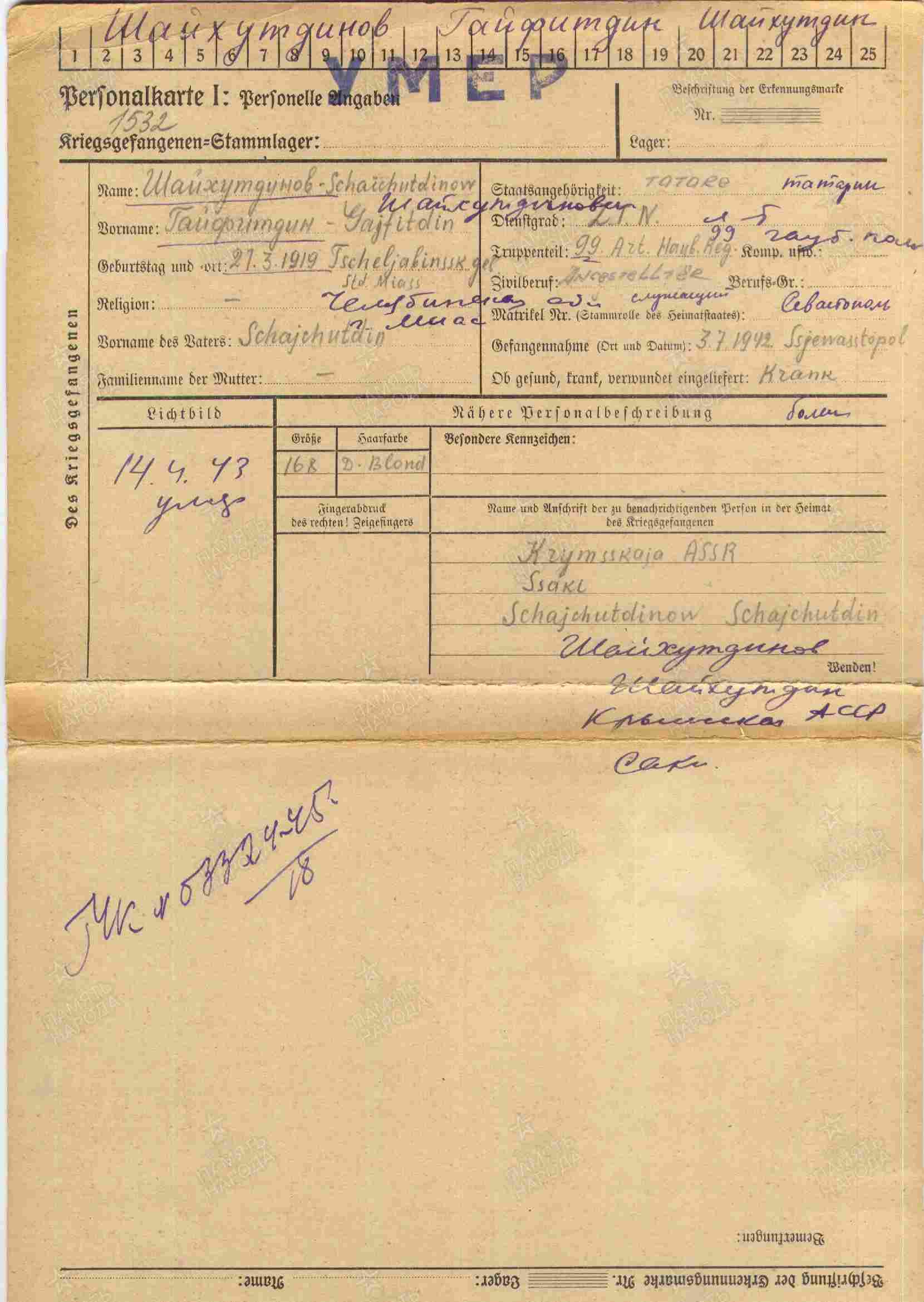 Реестр захоронений времен Великой Отчественной Войны в Севастополе