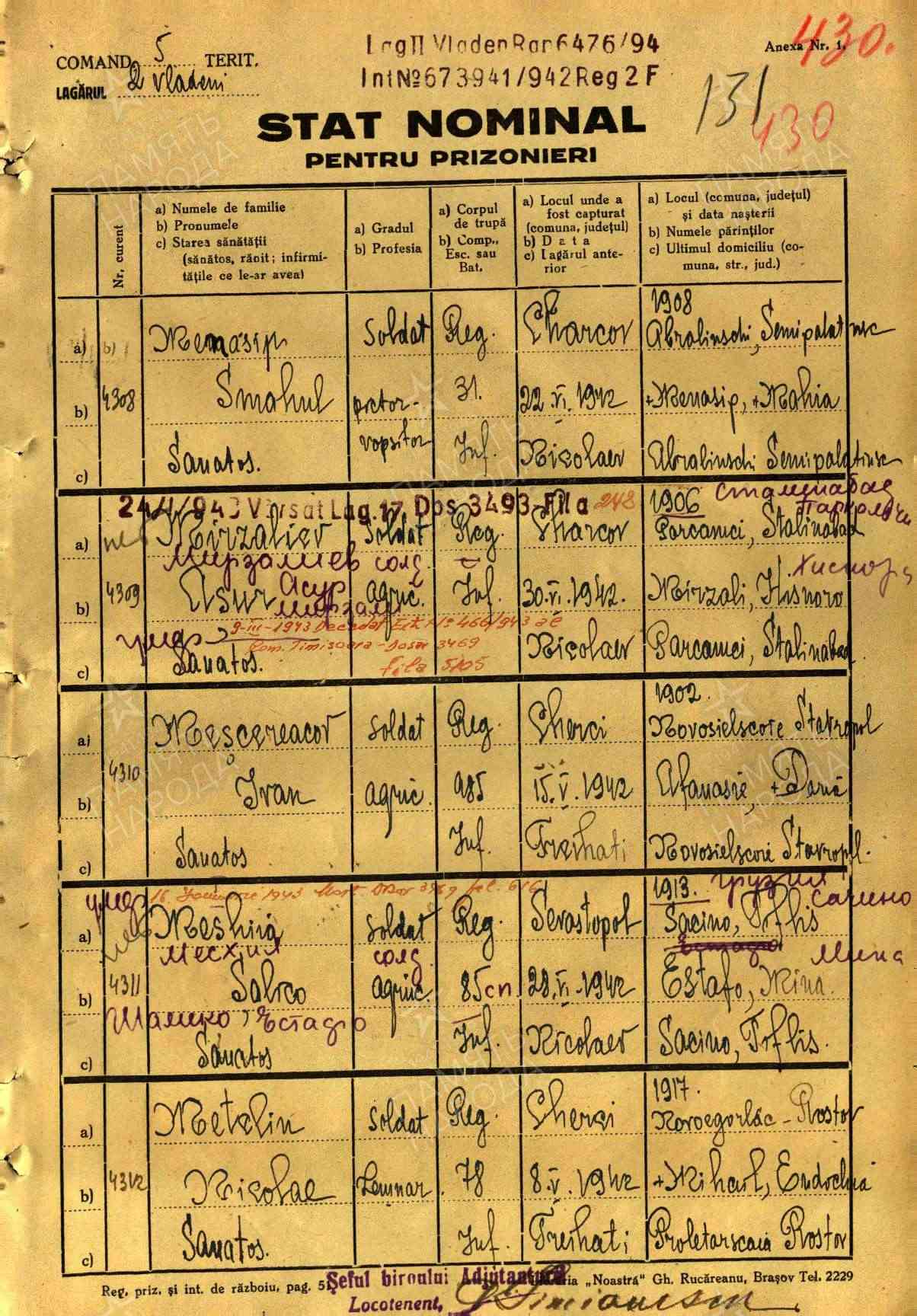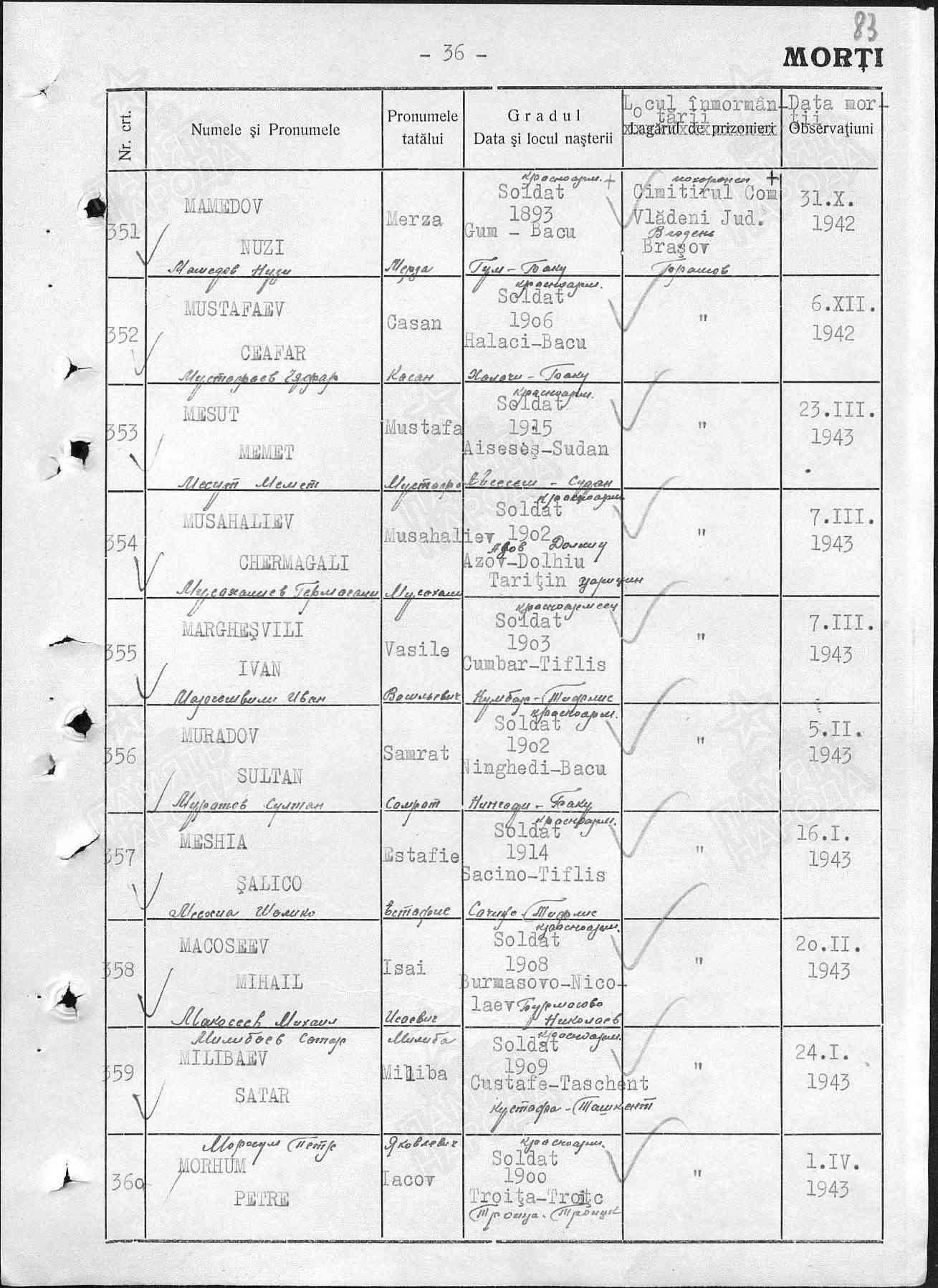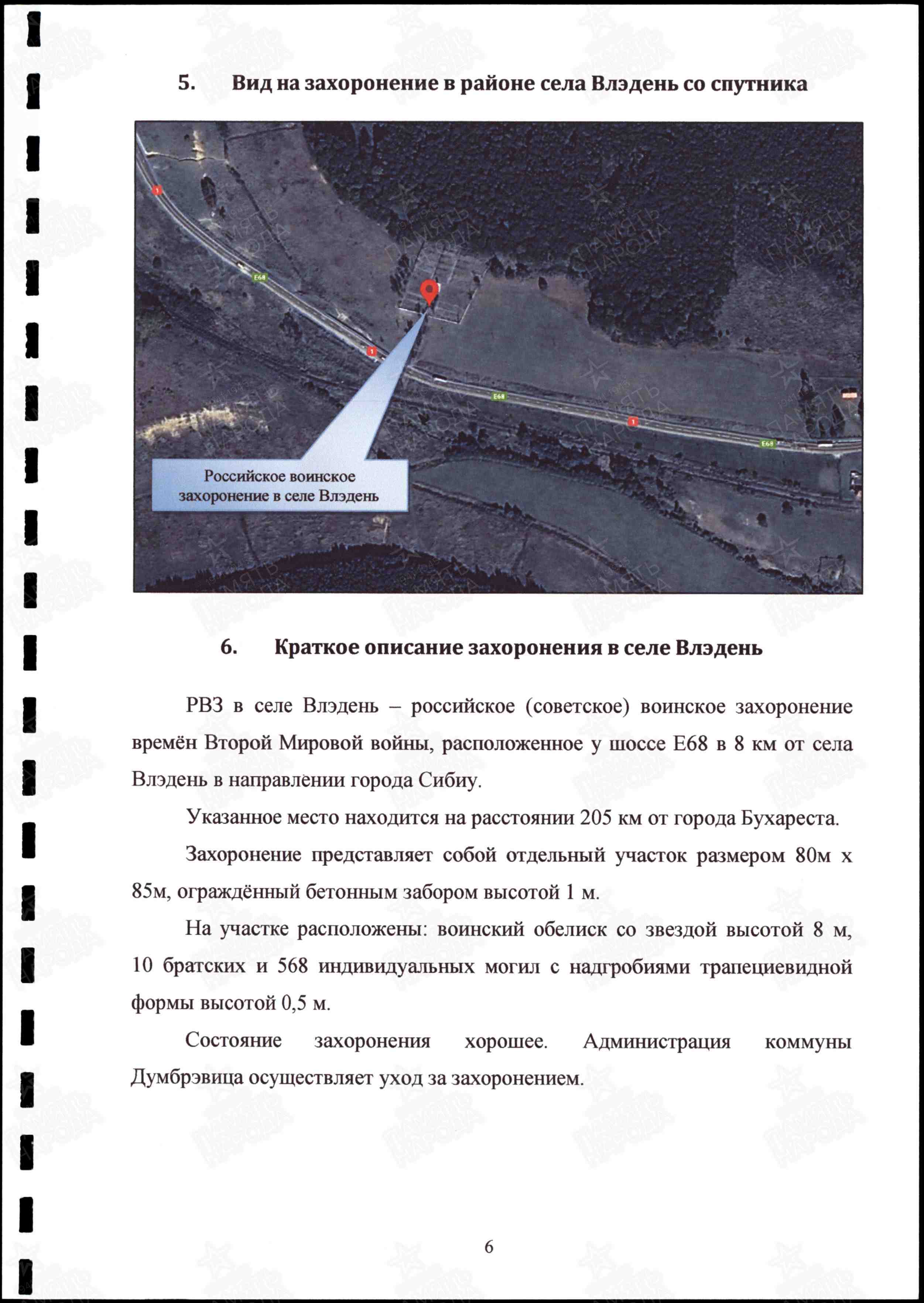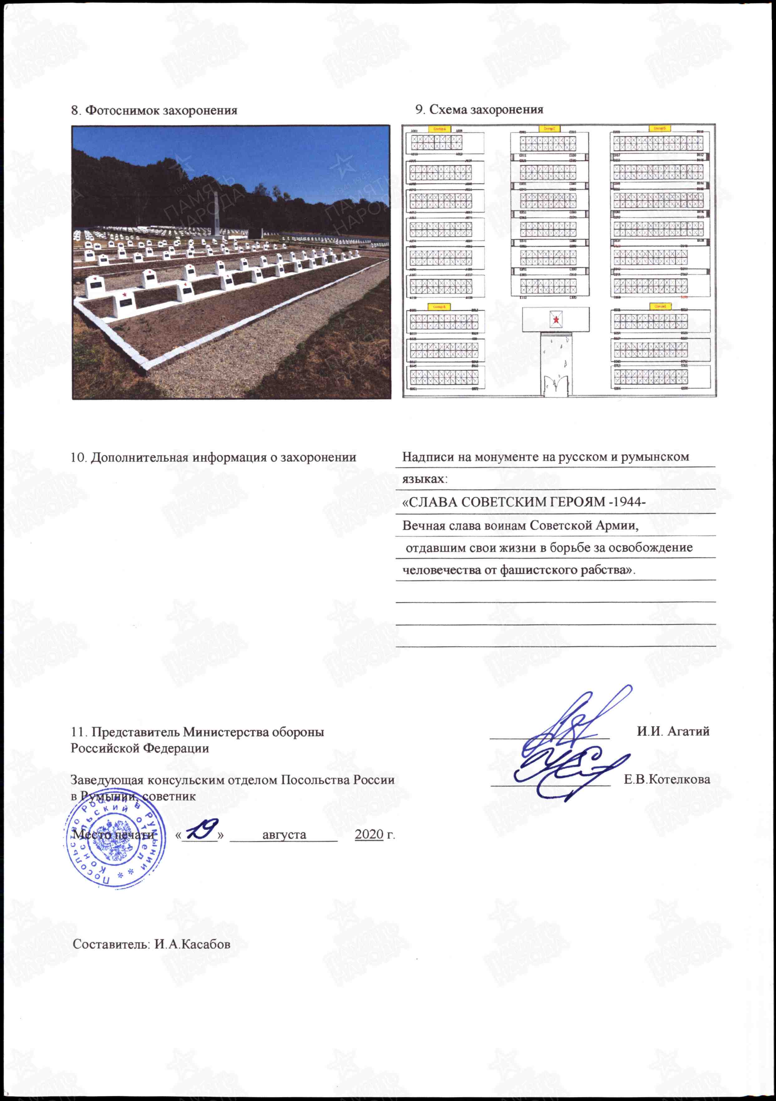Дополнительно: Страна захоронения: Румыния. Регион захоронения: Брашов уезд. Место захоронения: с. Влэдень, 8 км, ш. Е68 в направлении г. Сибиу. Могила: ИМ А104