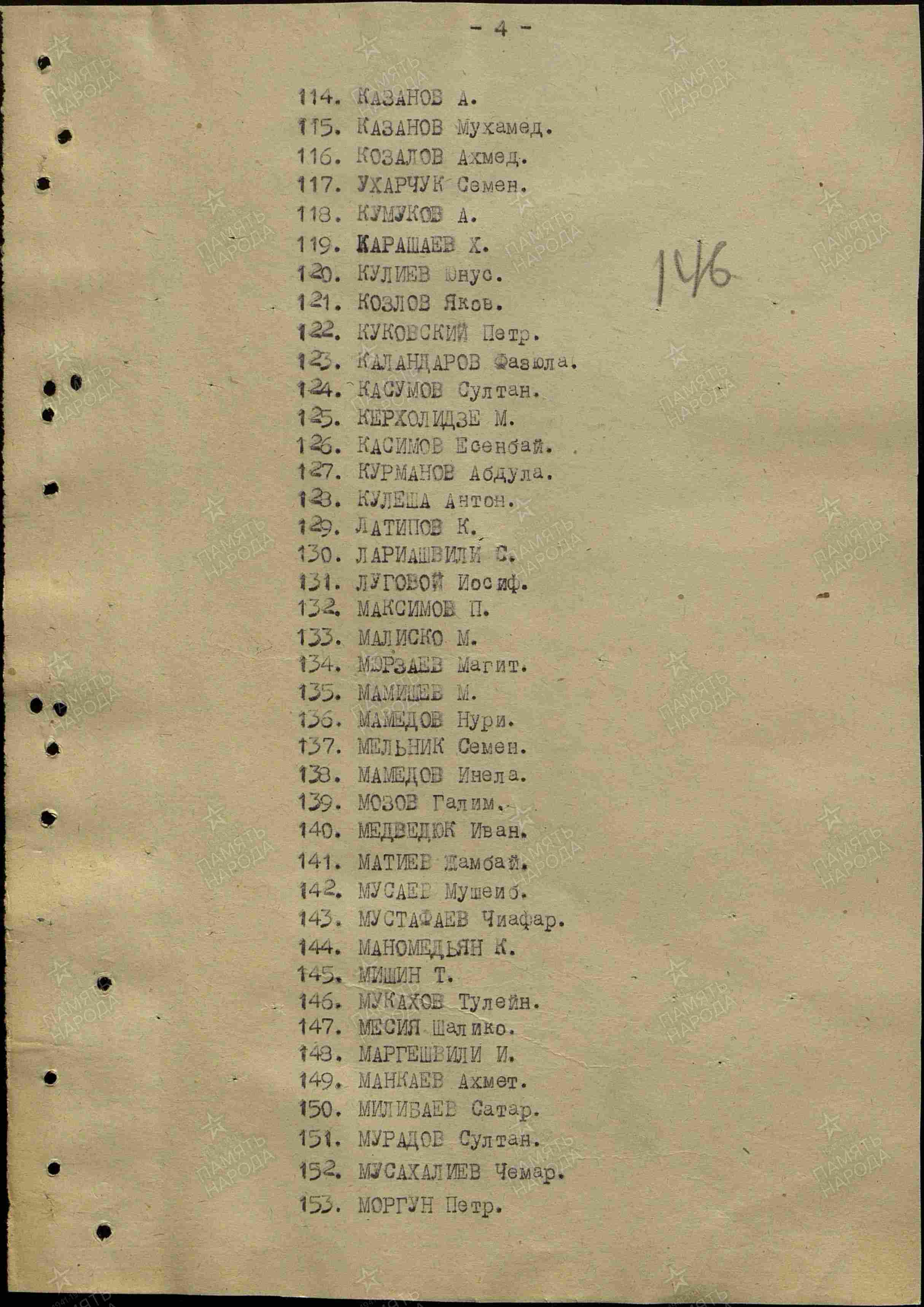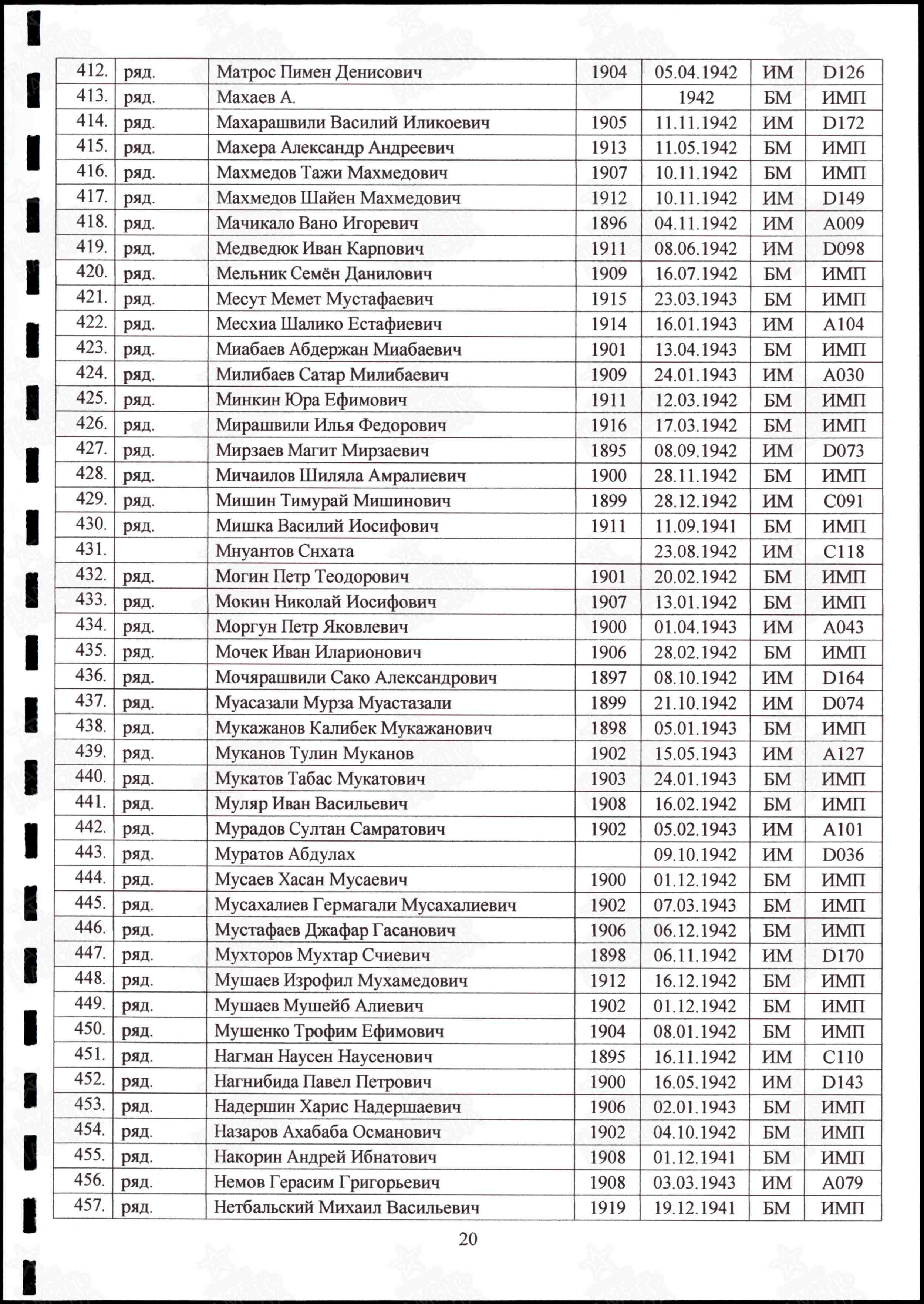 Информация: ЦАМО ф.58,о.977528,д.134; ЦАМО ф.58,о.18003,д.1620; ЦАМО ф.3397,о.281567с,д.1; ЦАМО ф.277,о.265193с,д.1; ЦАМО ф.58,о.18003,д.1607; Паспорт захоронения