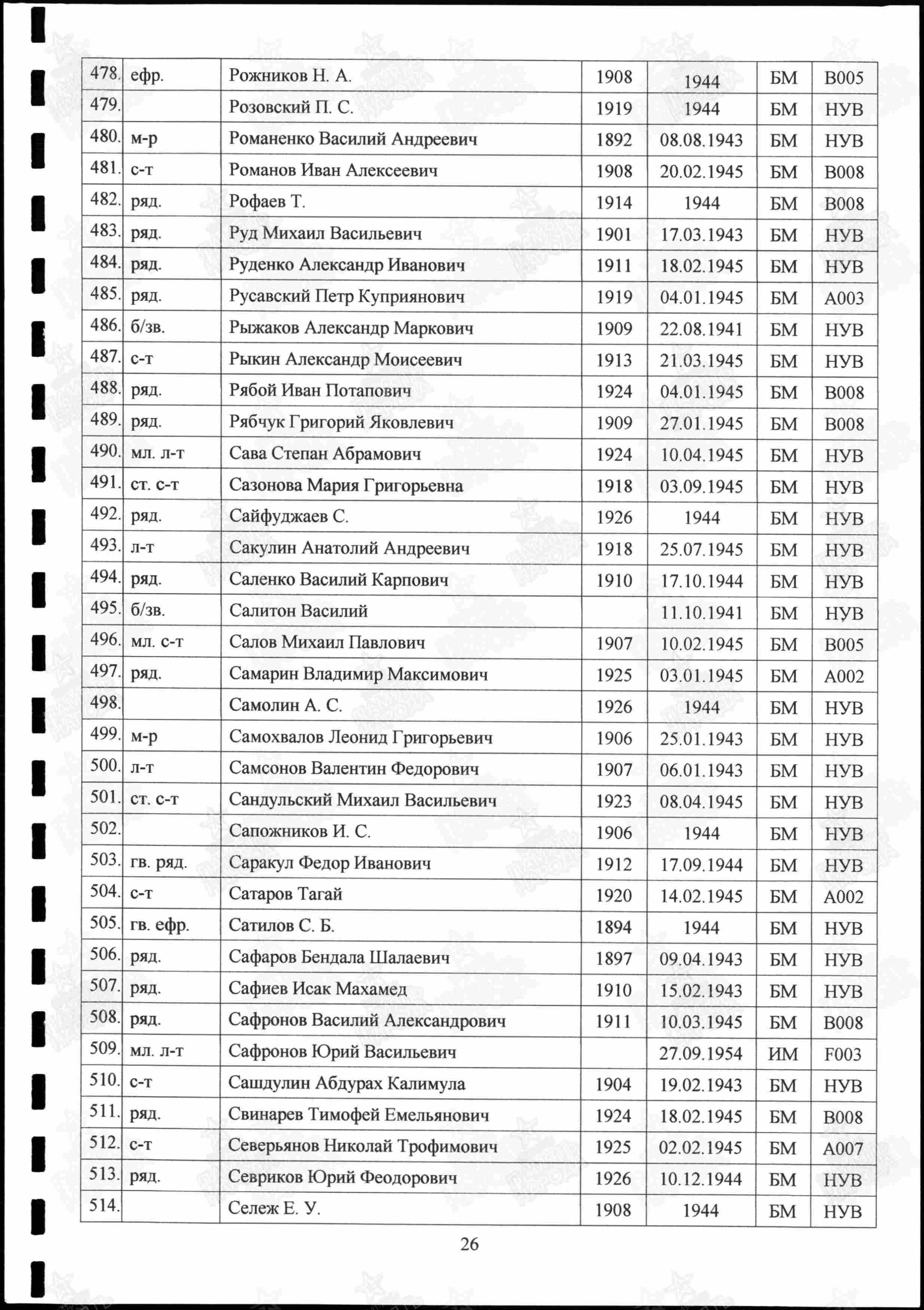 Информация: ЦАМО ф.58,о.977528,д.134; Паспорт захоронения