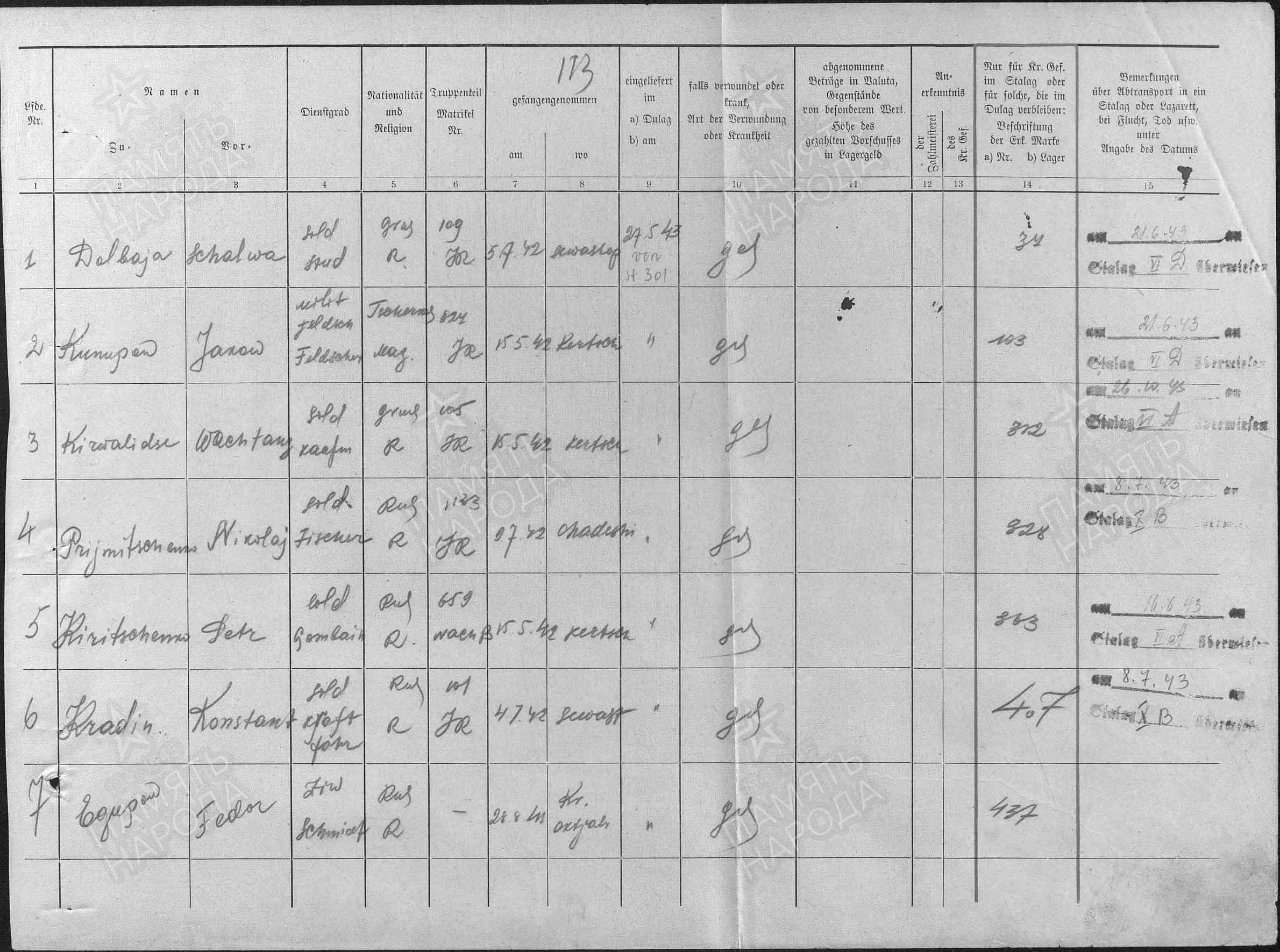 Дата призыва: 11.1939 Место призыва: Сталинский РВК, Грузинская ССР, г. Тбилиси, Сталинский р-н. Попал в плен (освобожден). Выбытие из воинской части: 01.01.1946