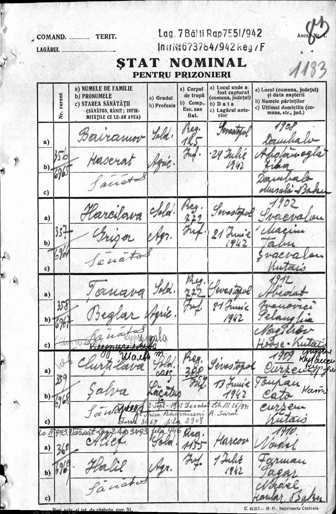 Место заключения: лагерь 7 Бельцы